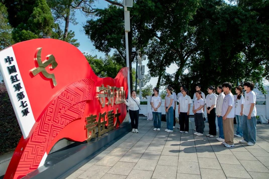 赴百色开展活动的师生,来到百色起义烈士纪念碑前,为革命先烈敬献花篮,瞻仰纪念碑,缅怀革命先烈,表达崇高的敬意和深切的哀思。随后组织开展红色党建活动,重温长征路上的重大事件,铭记历史,笃定前行。师生们参观了百色起义纪念馆,聆听讲解员对现场文物、照片、史料的介绍,深刻了解革命历史事件背景、过程和英雄人物的事迹,深刻感受革命先烈们不畏艰险、敢于牺牲的革命精神。活动过程中,党员同志交流心得体会,师生沟通互动,分享红色学习的意义。