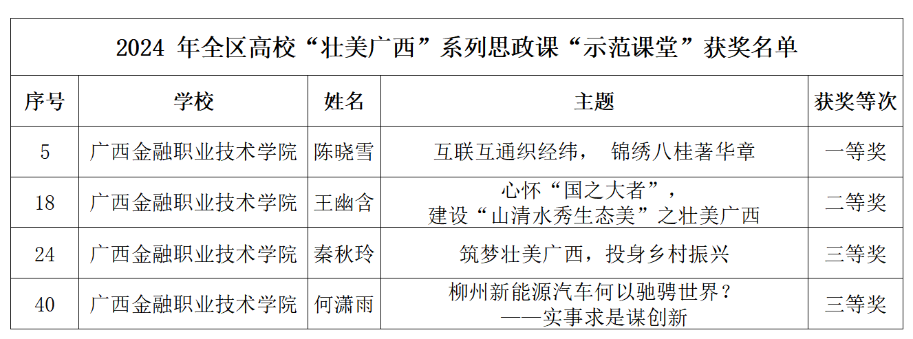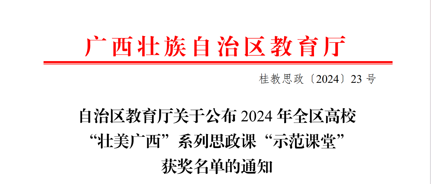 近日,广西壮族自治区教育厅公布2024年全区高校“壮美广西”系列思政课“示范课堂”评选活动结果,西汉姆联马克思主义学院教师荣获一等奖1项、二等奖1项、三等奖2项的好成绩。