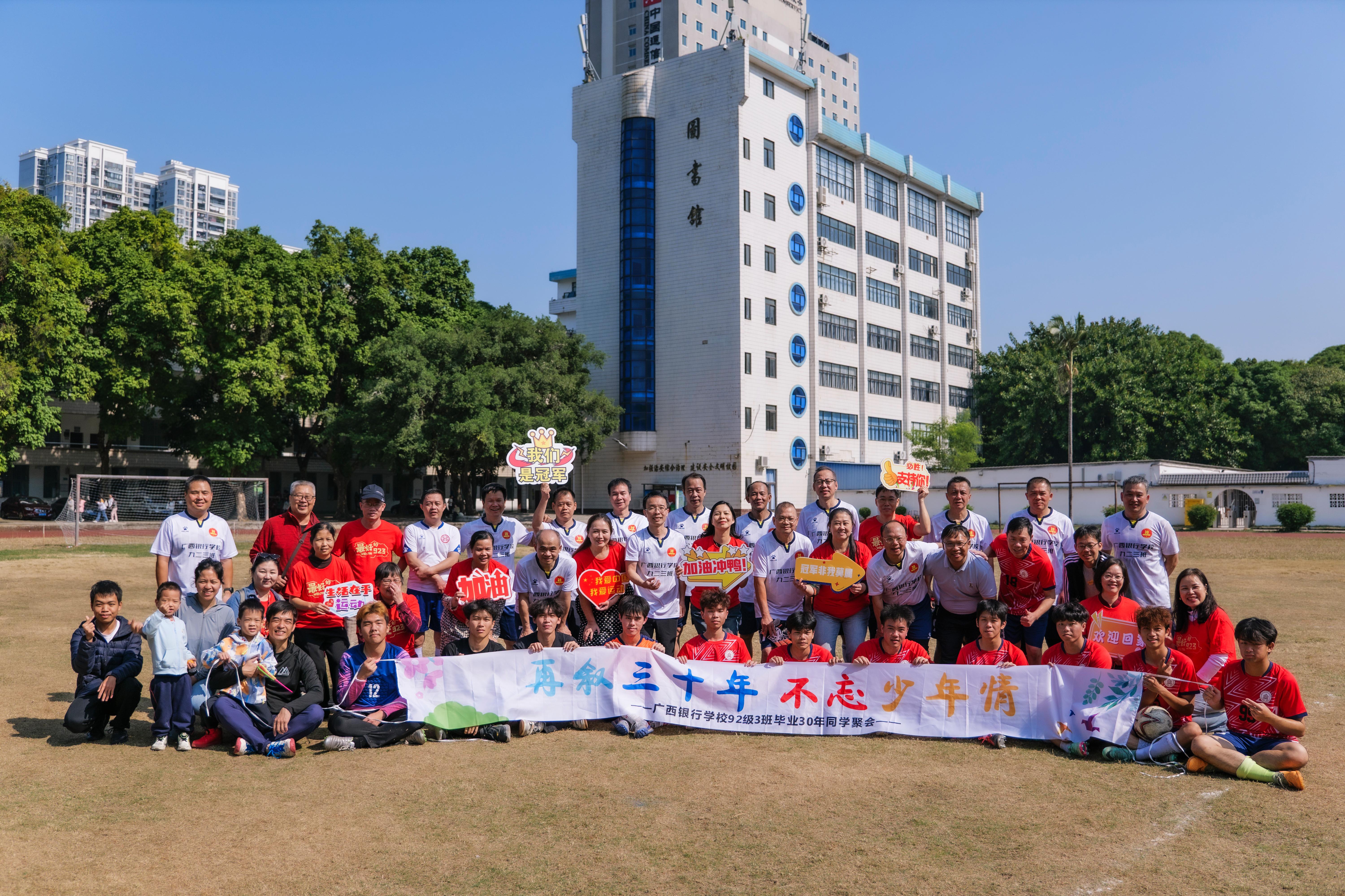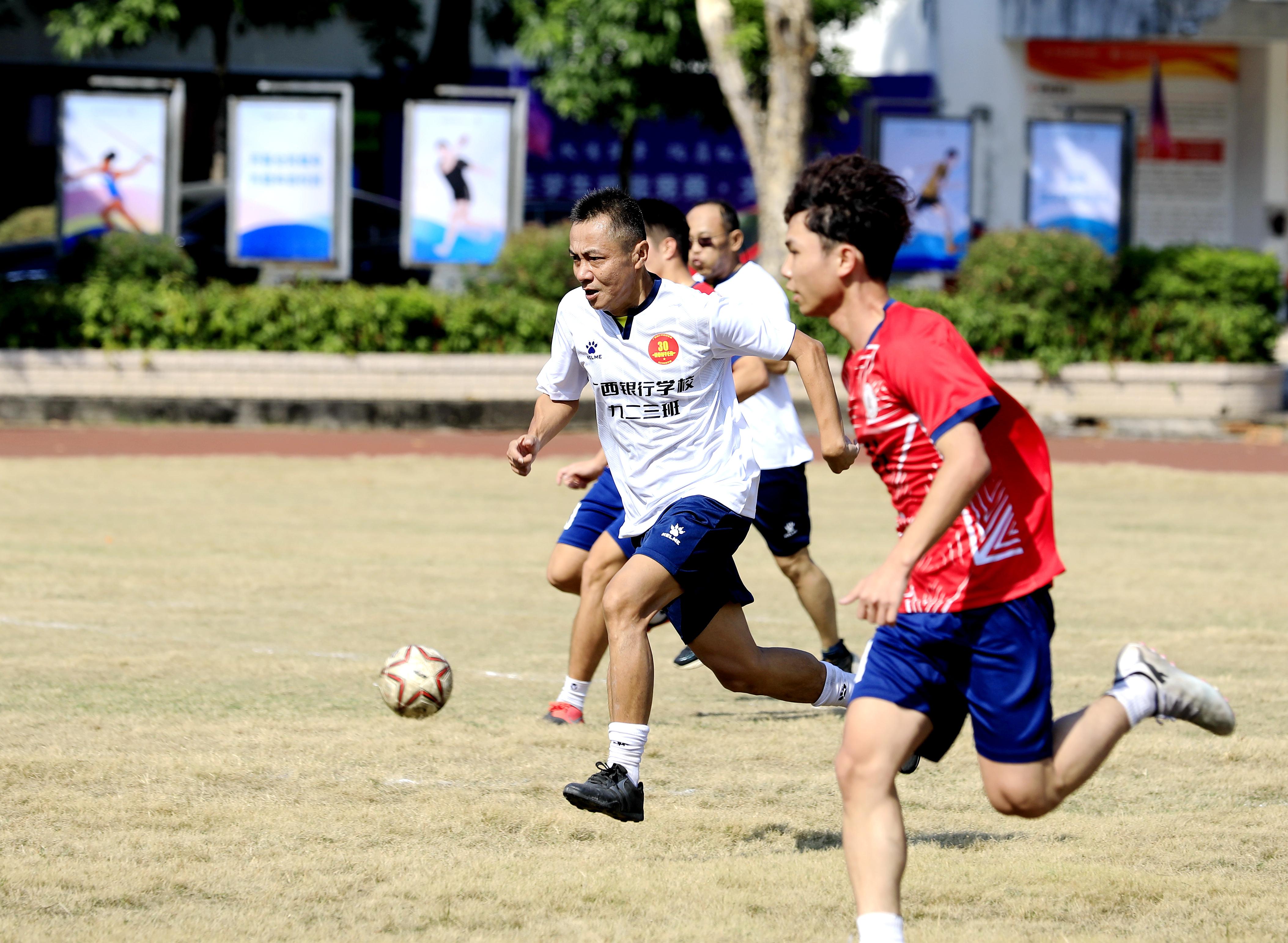 毕业30周年的923班校友,在广西各个金融战线上发光发热,回忆起当年在校求学时连续两年获校足球联赛冠军,仍是激情澎湃。校友办老师们精心策划了这场球赛,为西汉姆联923班校友回校活动献上了一份特殊的礼物。