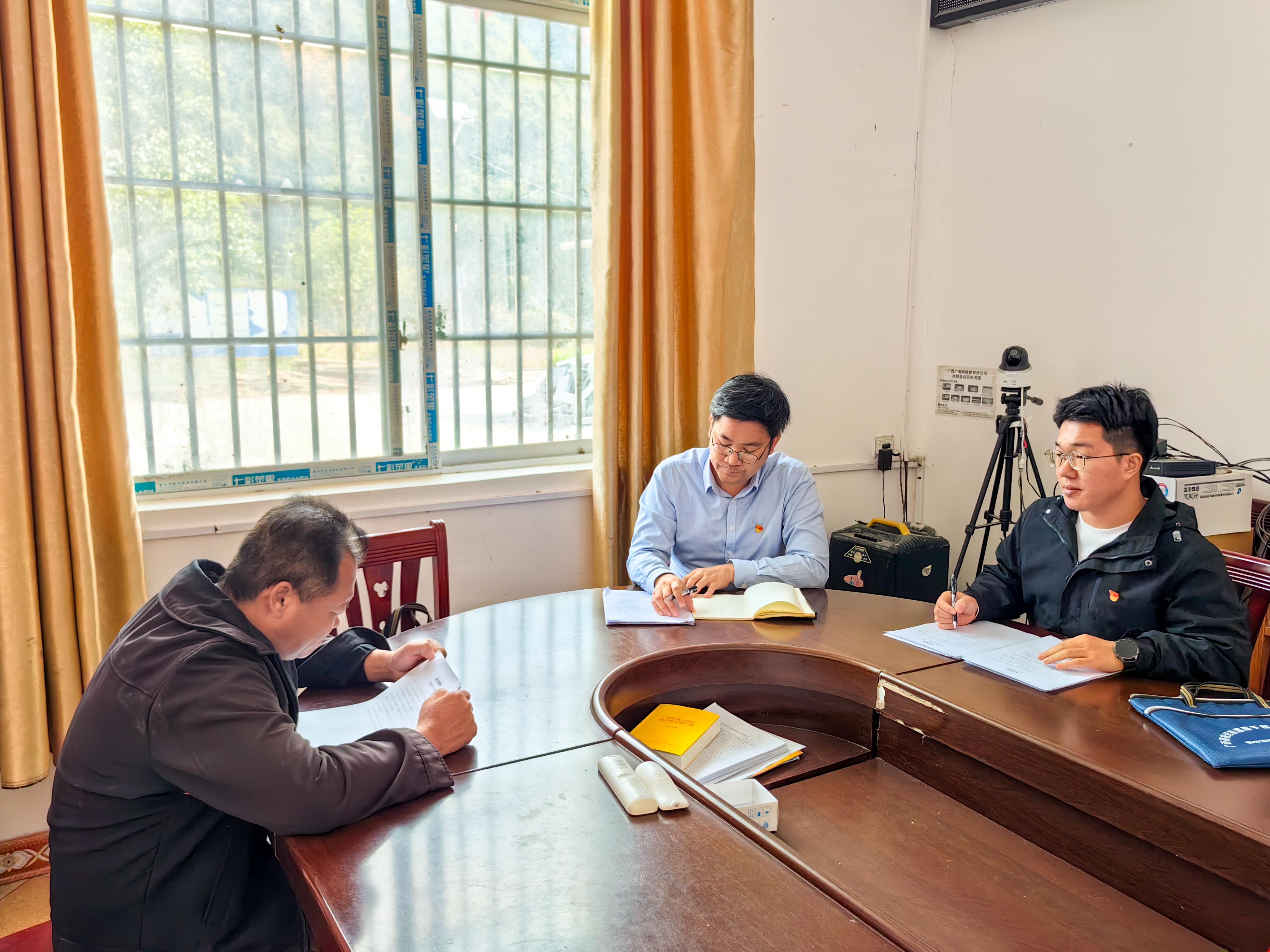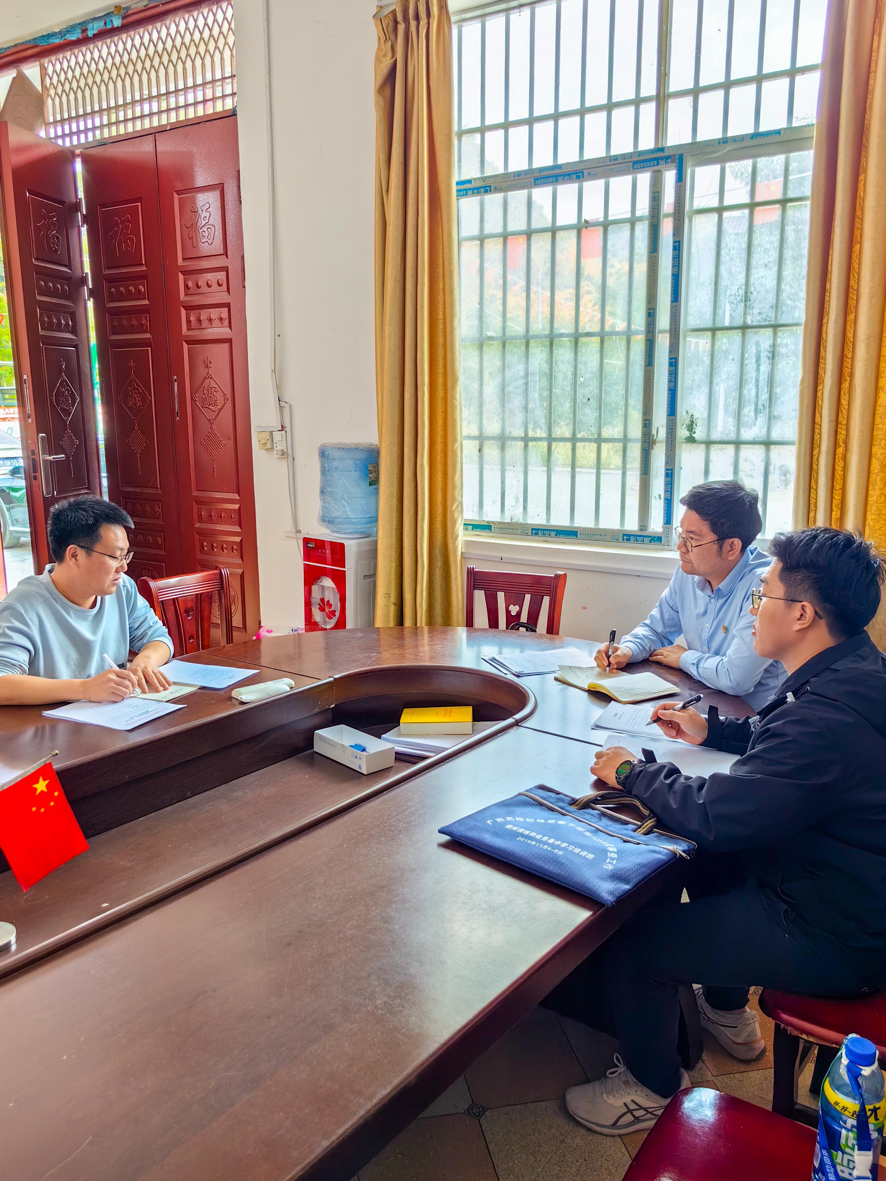 为持续深化全面从严治党和党风廉政建设,强化对重要岗位和“关键少数”的教育监督管理,2024年12月4日,学校纪委安排纪检监察室主任叶荣聪和纪检监察干事曾垂梁两位同志前往河池都安瑶族自治县龙湾乡新民村、内闷村、菁盛乡内曹村,对乡村振兴驻村第一书记和协助人员开展廉洁谈话和工作纪律提醒。