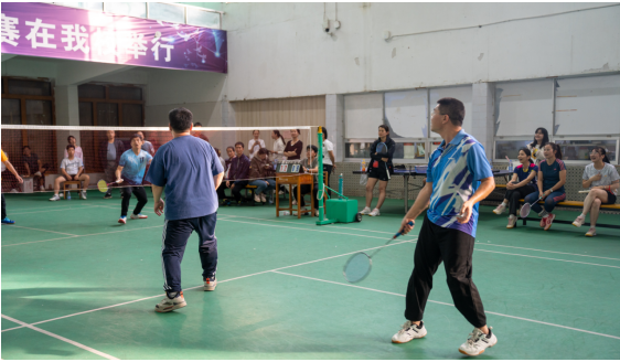 比赛过程中,教职工们一改平日的沉稳形象,活力四射地在赛场上奔跑、击球。他们精准的发球、迅猛的扣杀以及巧妙的吊球等精彩技艺,不断赢得现场观众的阵阵喝彩与掌声。各参赛小组的队员们彼此信任、配合默契,每球必争,充分展现出了强大的团队协作精神与顽强拼搏的竞技精神。