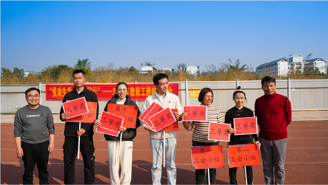 首先开始的是趣味运动会环节。毛毛虫接力便将气氛点燃,教职工们齐心协力、步伐一致地向着终点冲刺,现场加油声、欢笑声此起彼伏。背靠背夹球接力赛,大家配合默契,展现出团结协作的精神风貌。滚轮胎比赛中,选手们各显身手,在赛场上你追我赶,充满了趣味性和挑战性。整个运动会过程紧张激烈又不失欢乐祥和,充分展现了教职工们积极向上的团队协作精神。