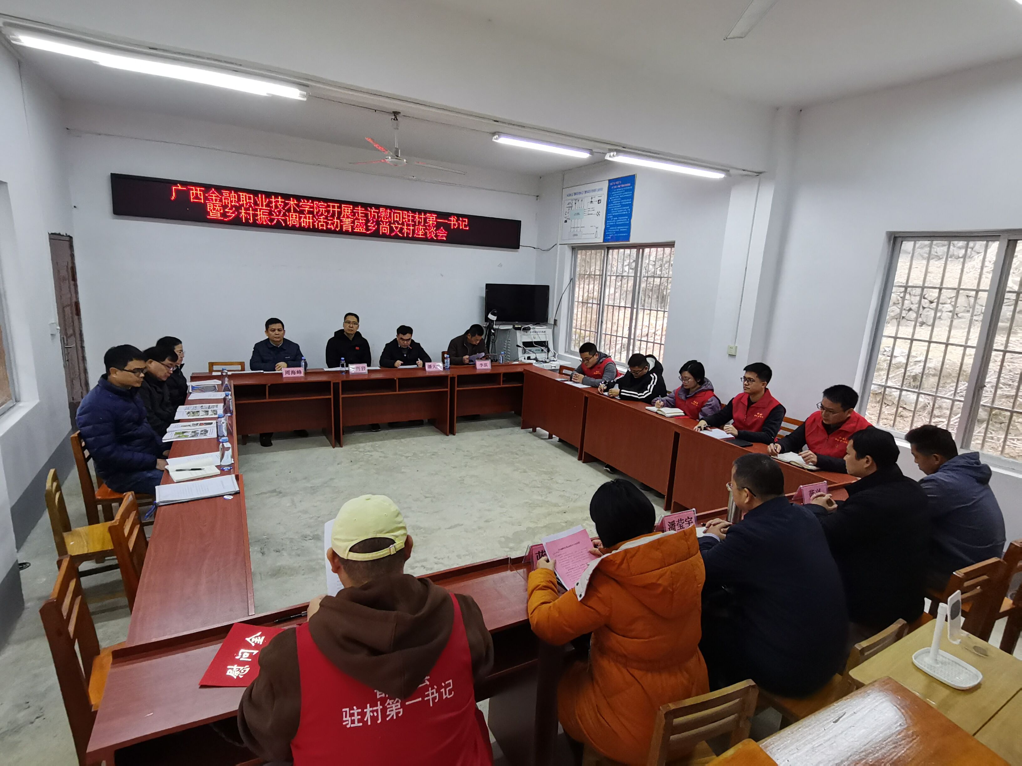 西汉姆联定点帮扶村开展走访慰问驻村第一书记暨乡村振兴调研活动座谈会在菁盛乡尚文村召开。学校党委书记李高岩、都安县人大常委会副主任潘莹宇、菁盛乡党委书记蓝艳恒出席座谈会,座谈会由学校党委委员、副校长潘大胜主持,各驻村第一书记及其所在部门负责人参加座谈会。