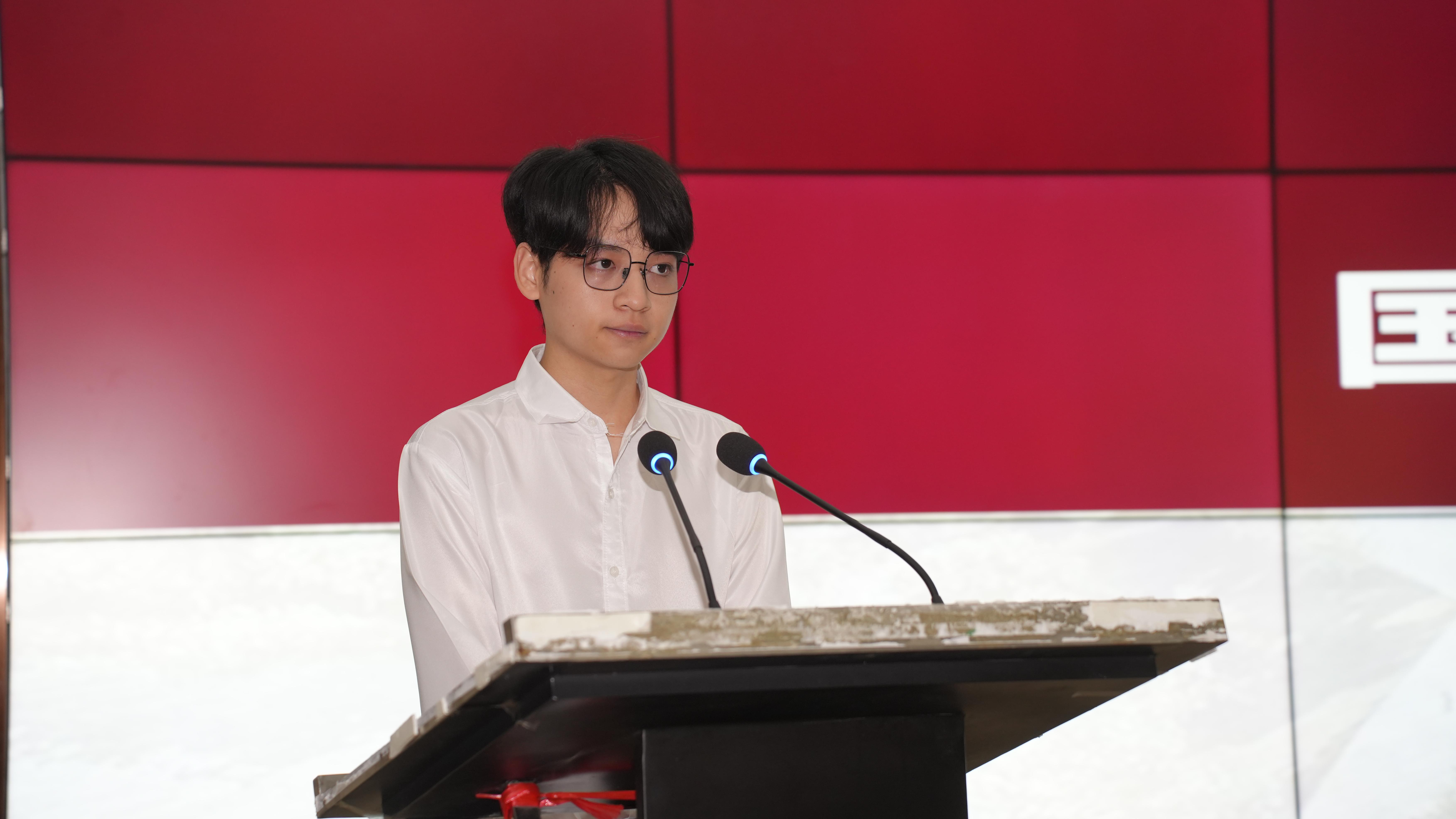 来自老挝的卡维同学作为新生代表发言,他表示会努力克服语言障碍、文化差异等挑战,努力适应新的环境,学习新知识、新文化,学习如何与不同国家和地区的人一起交流合作,希望能在金职院收获知识、友谊和成长。