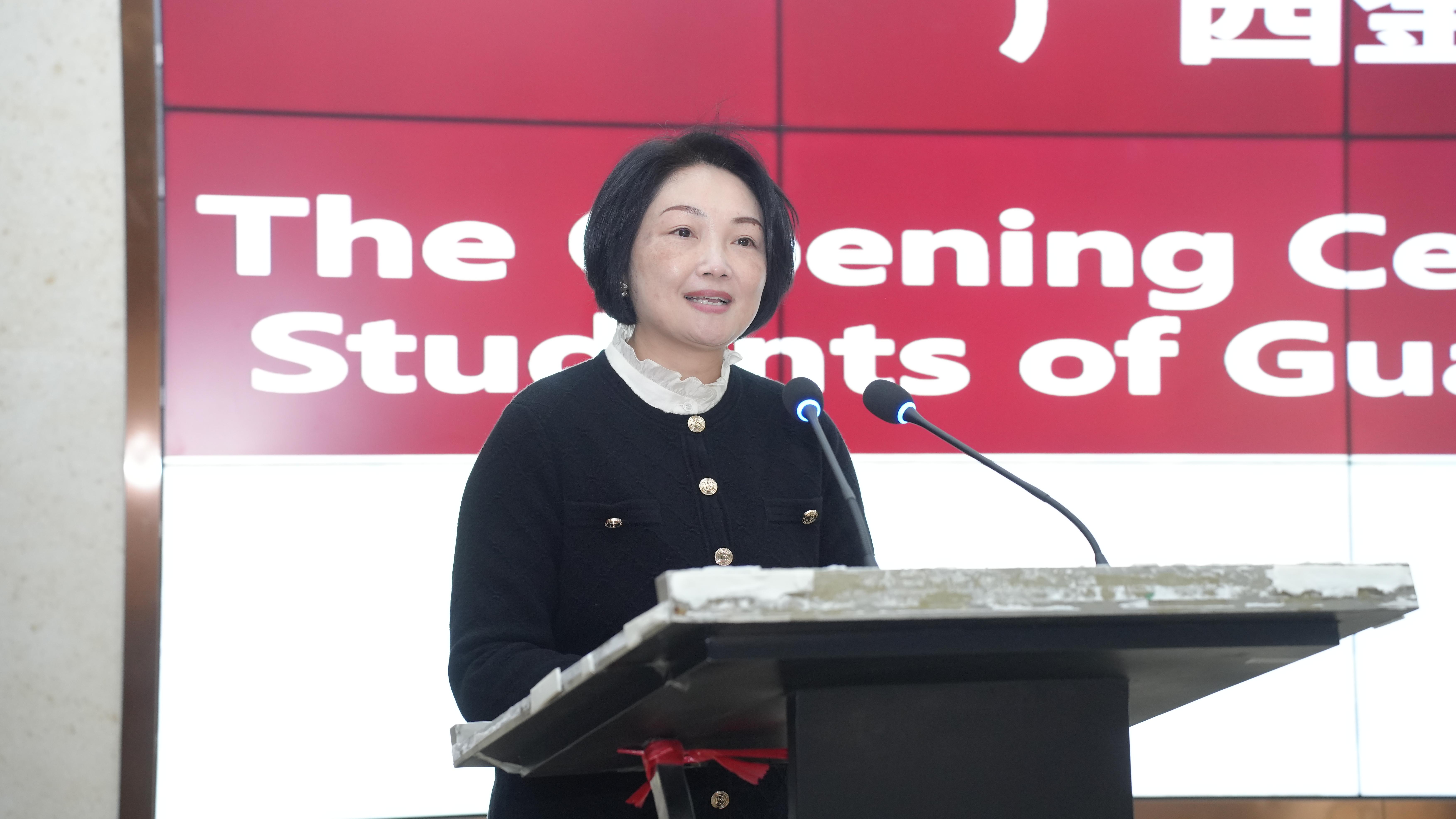 随后,唐丽华老师作为教师代表发言,她表示同学们对学习中文的渴望和勇气给了老师们莫大的力量,希望同学们通过汉语,在广西、在南宁、在金职院体验中国文化的美妙。