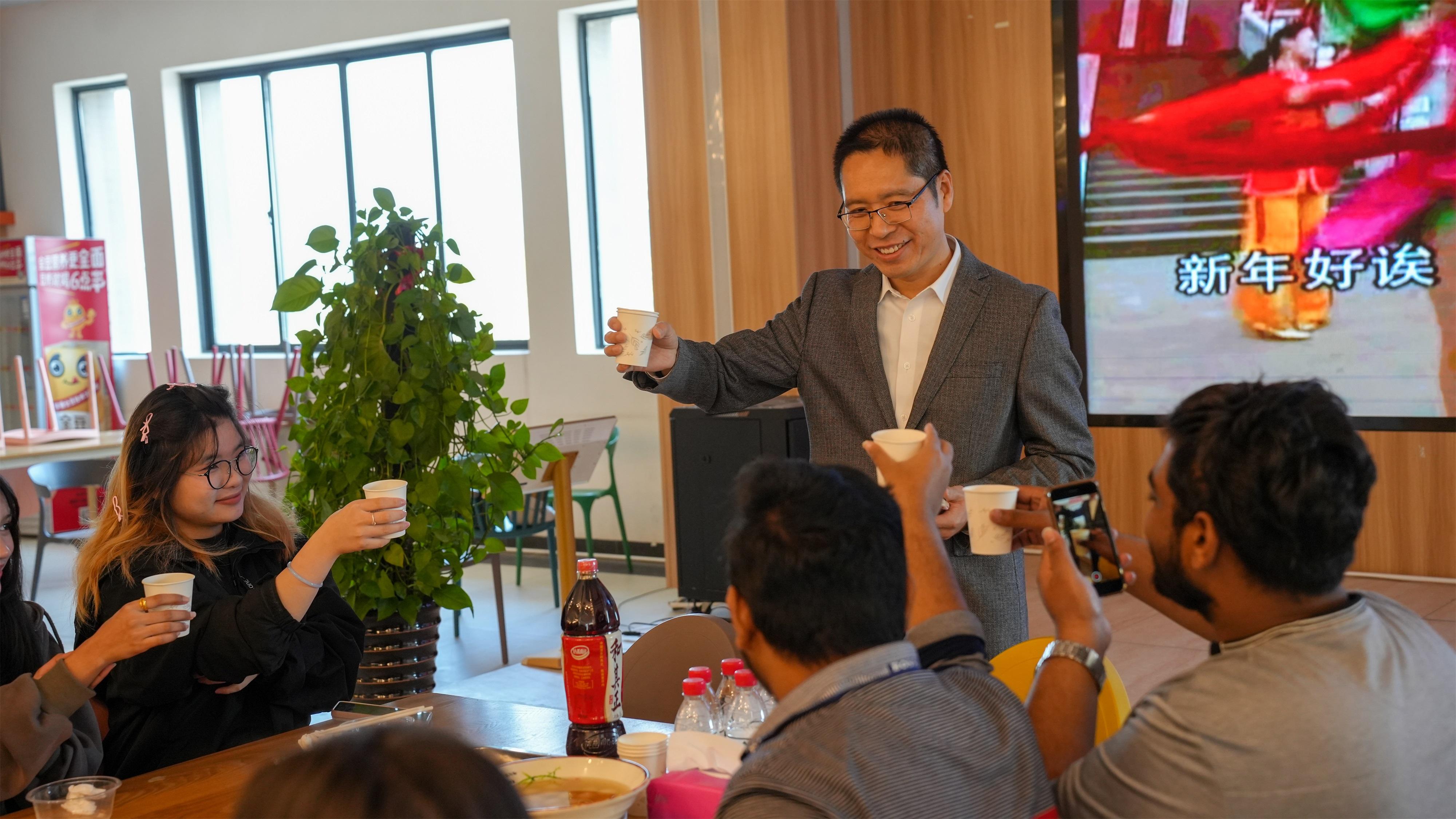 李高岩书记与国际学生举杯贺新春