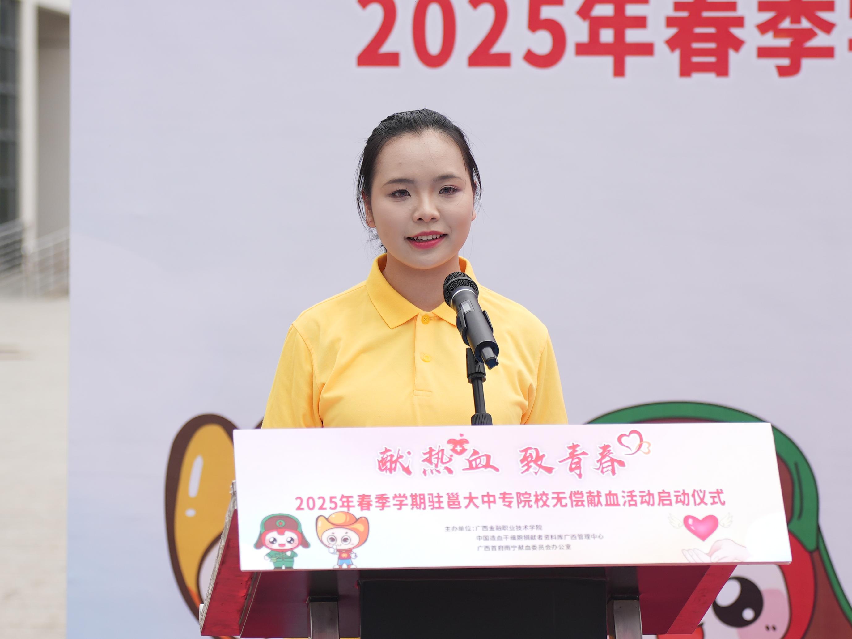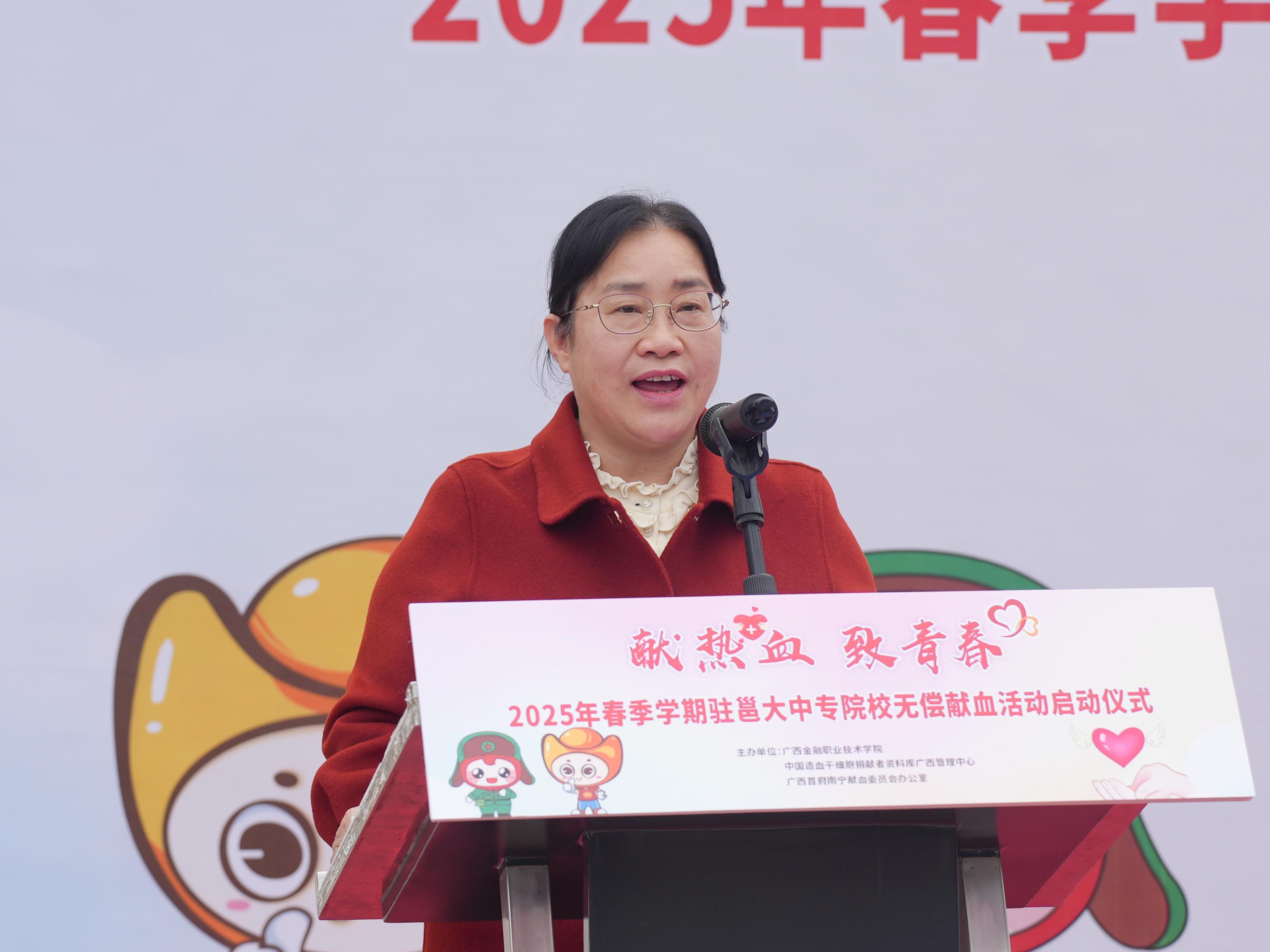 南宁市卫生健康委员会四级调研员陆燕同志在致辞中表示,多年来,驻邕大中专院校师生积极响应无偿献血号召,用实际行动诠释社会责任与担当。正是因为有了献血者的每一滴热血,他人的健康和生命才得以延续。同时也呼吁更多驻邕院校充分发动在校学生,奉献青春热血,以实际行动传递正能量,展现使命担当。
