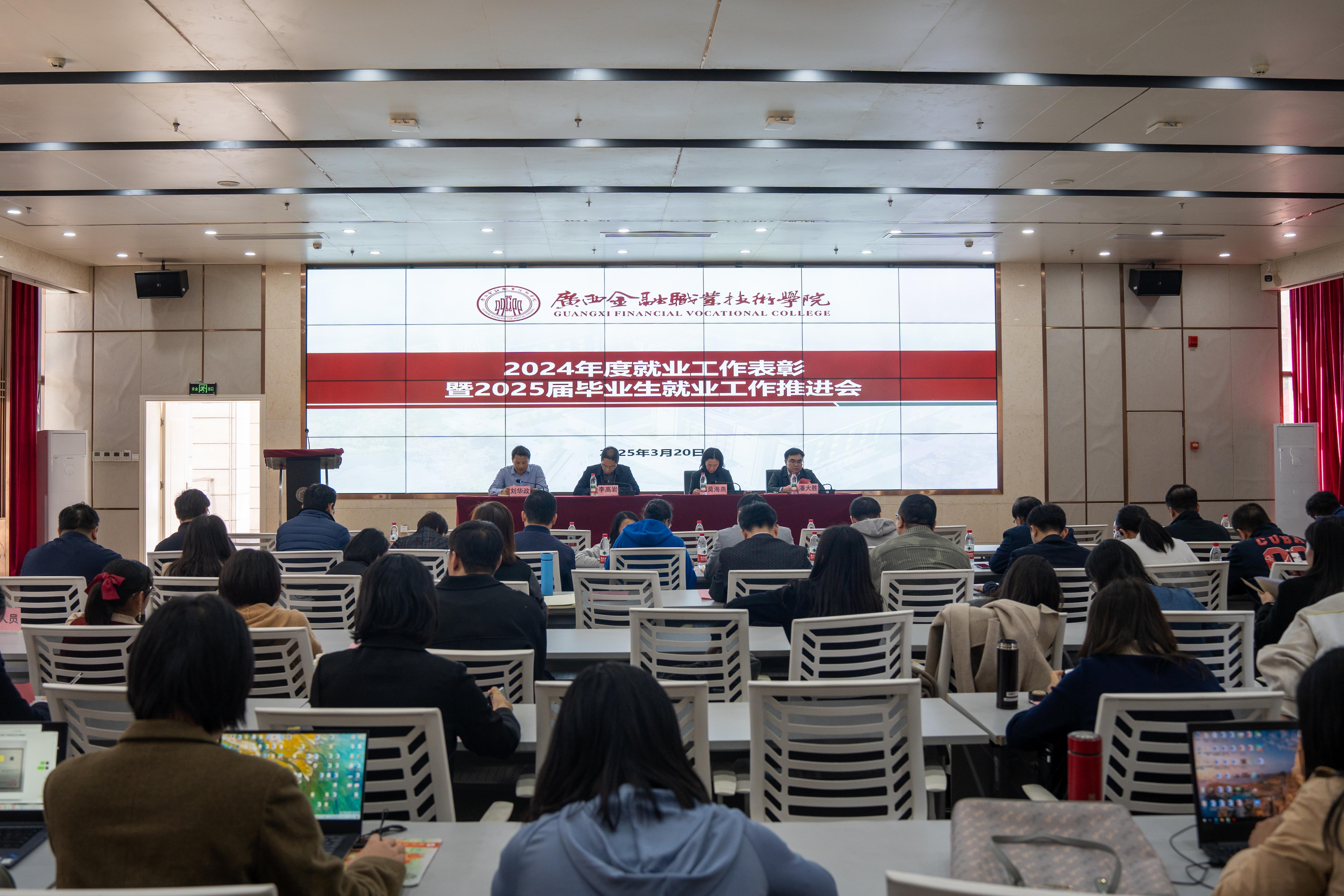 2025年3月20日下午,西汉姆联在西校区道德大讲堂召开了2024年度就业工作表彰会暨2025届毕业生就业工作推进会,党委书记李高岩、校长莫海燕出席会议并讲话,会议由党委副书记、纪委书记刘华政主持。校领导、各二层单位负责人、招生就业处全体成员、二级学院专业负责人、就业专干、2024届及2025届辅导员等参加会议。