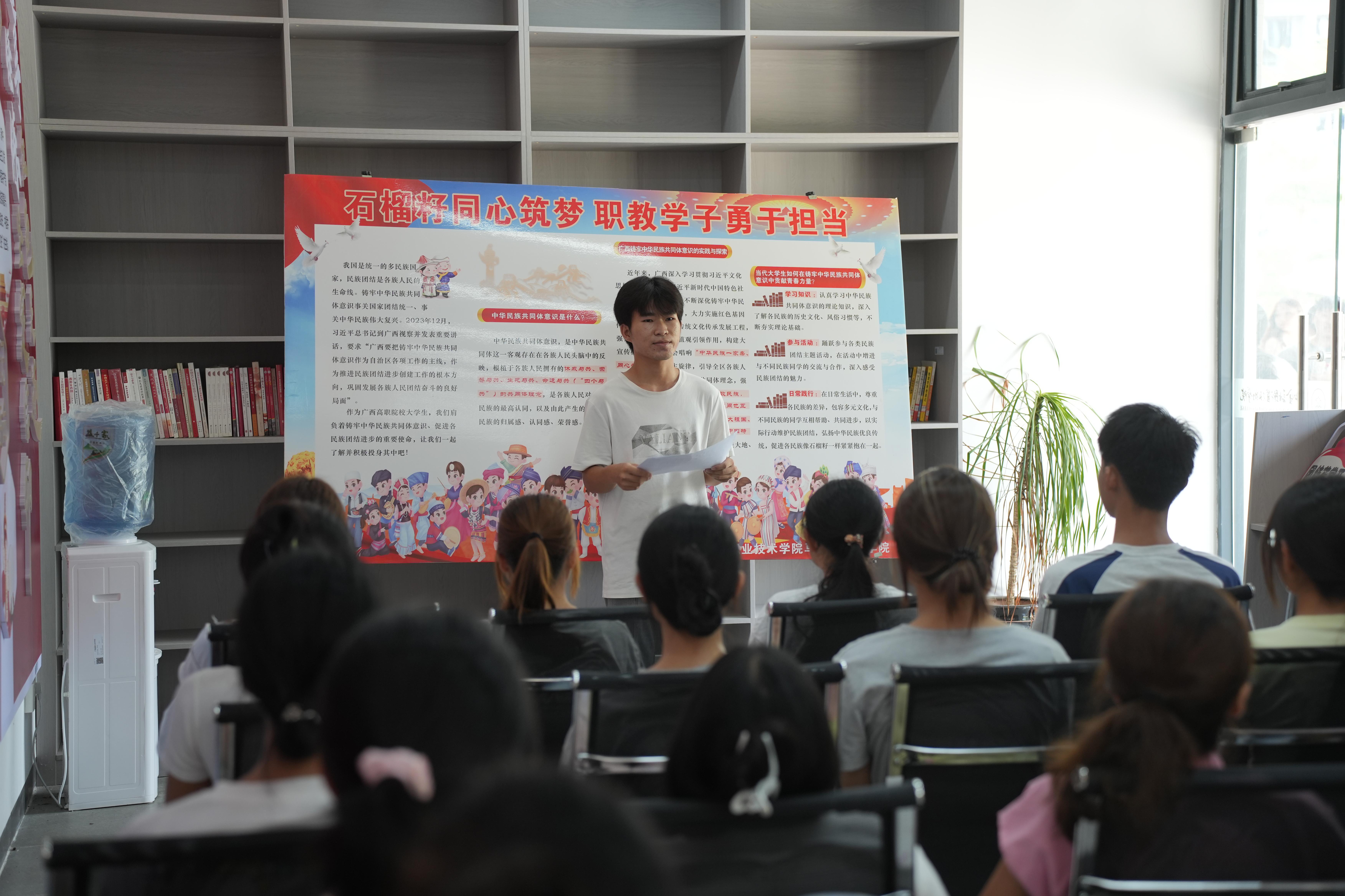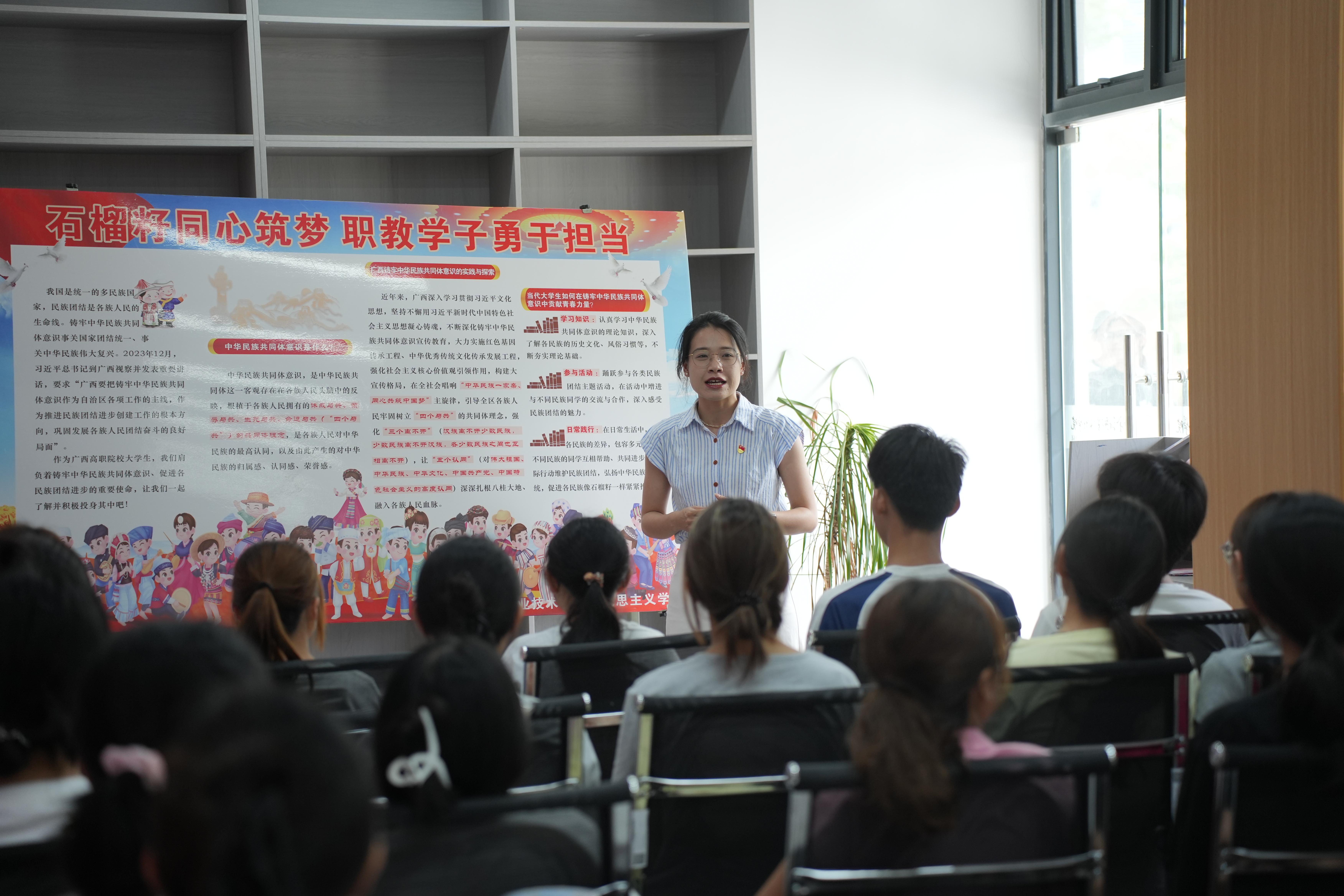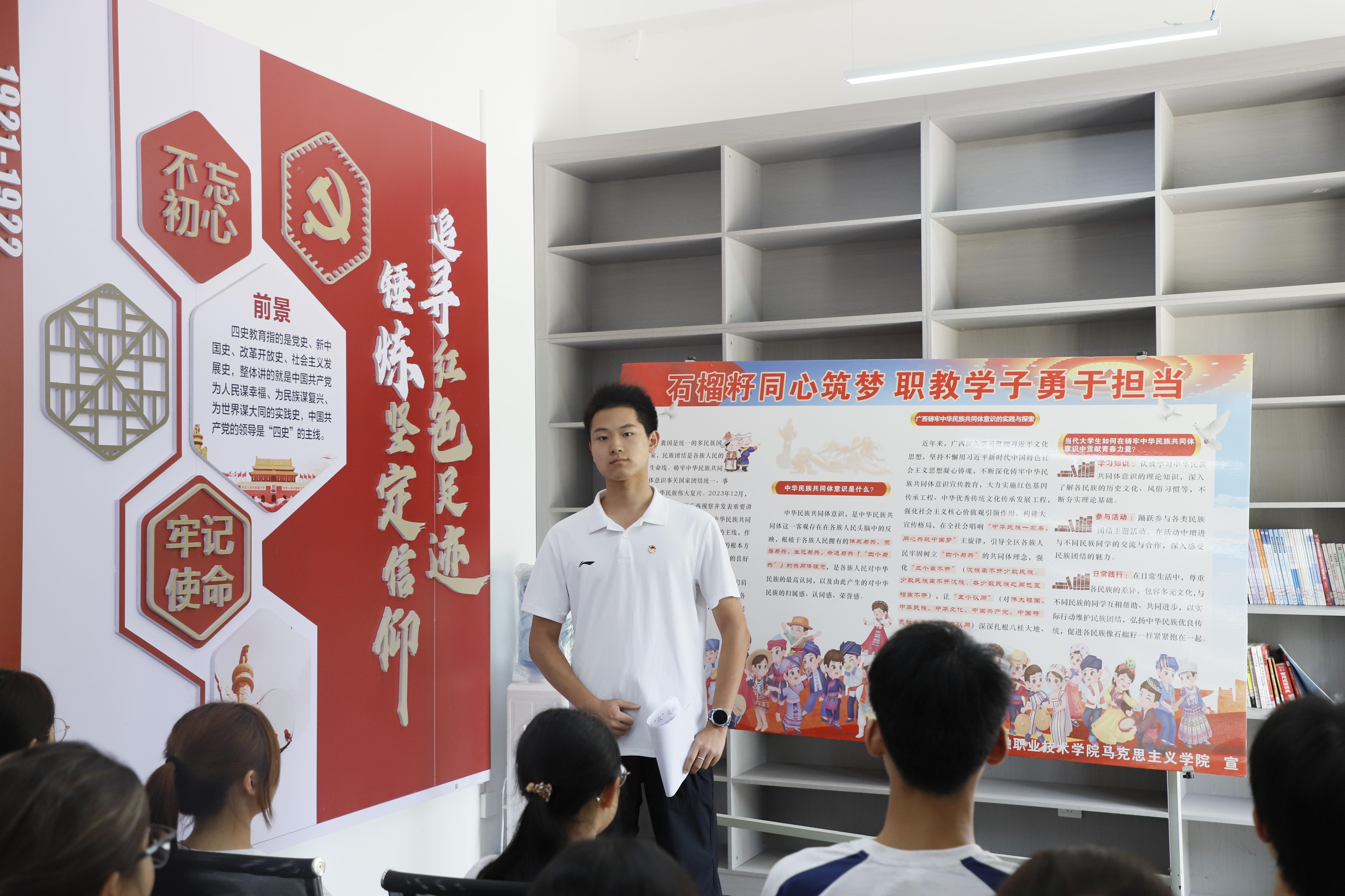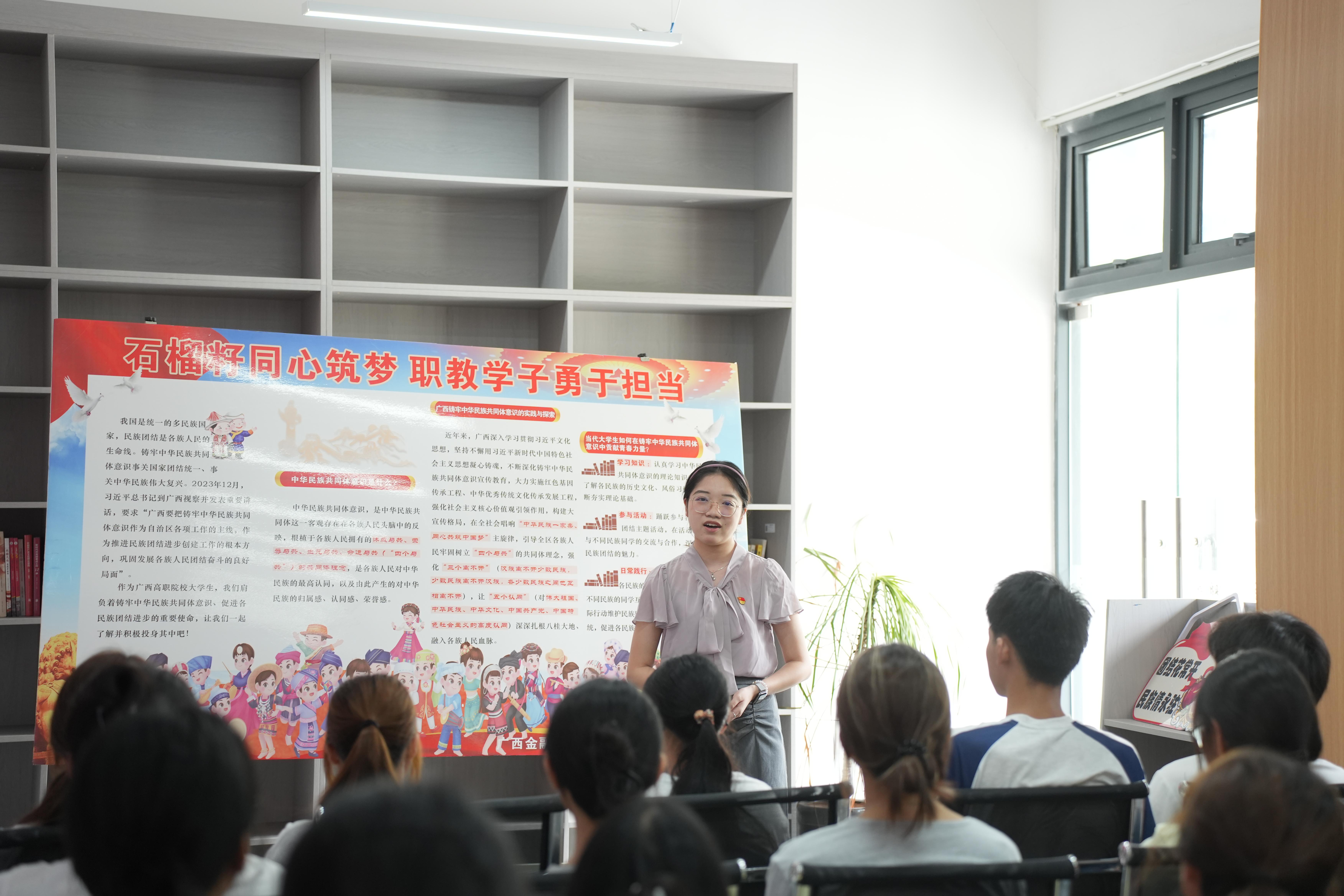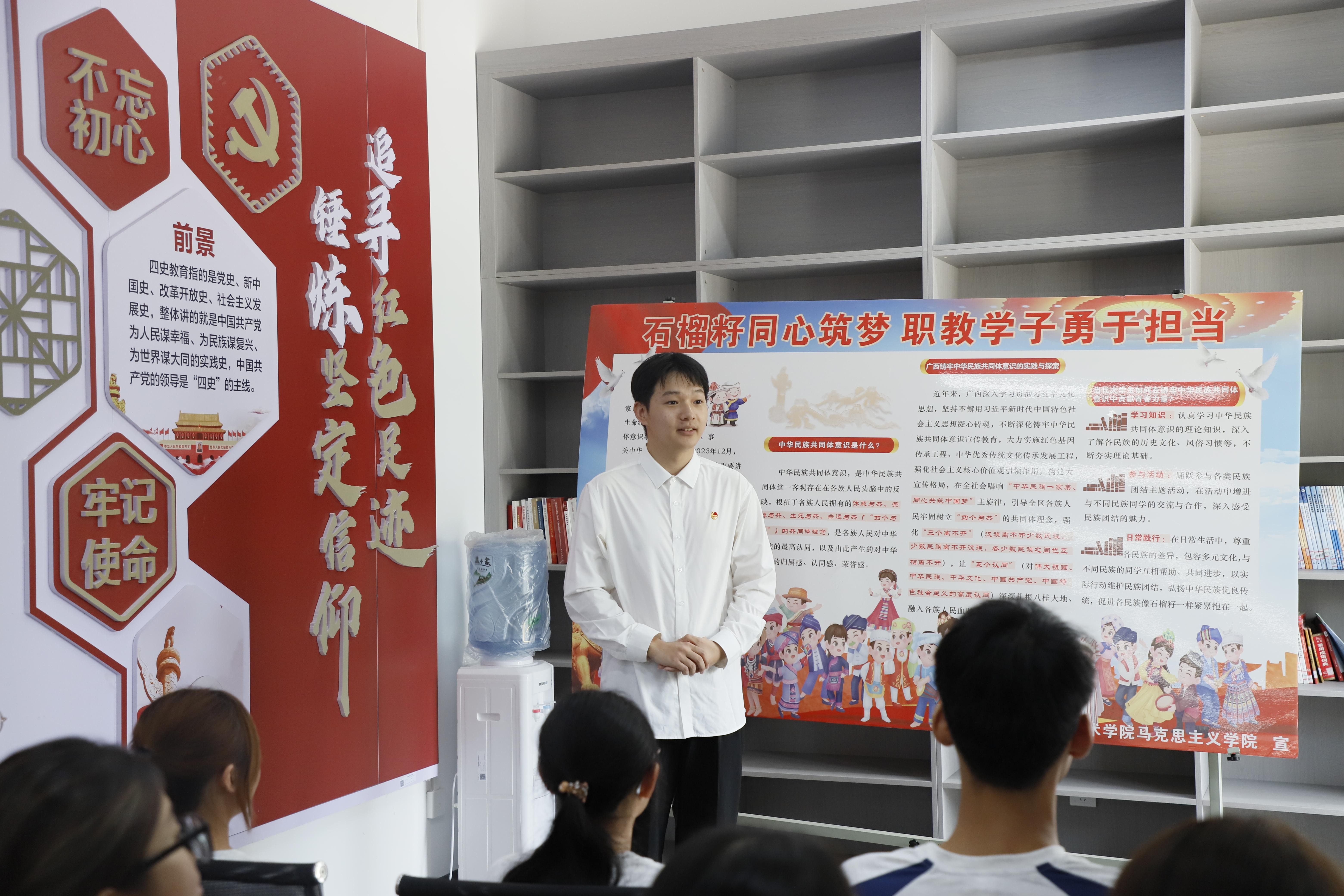 本次活动设置知识宣讲和知识竞答两个环节。在宣讲环节,马克思主义学院王幽含、钟雨晴两位思政课教师围绕抗日战争史中的关键事件与铸牢中华民族共同体意识的核心内涵,以“微型讲解+即时互动”的形式展开宣讲,引导师生在问答中感悟历史厚度与精神力量,来自人工智能学院的杨晅同学、投资与保险学院的汪子鹤同学和张凯同学现场分享了参加宣传学习的收获和体验。知识竞答环节则将学习热情推向高潮,师生通过扫描现场二维码进入答题系统,每当屏幕显示“答题成功”,参与者便能即时领取定制书签、主题文创等精美礼品,在轻松竞技中巩固所学,现场掌声与欢笑声此起彼伏,让理论学习在生动实践中入脑入心。