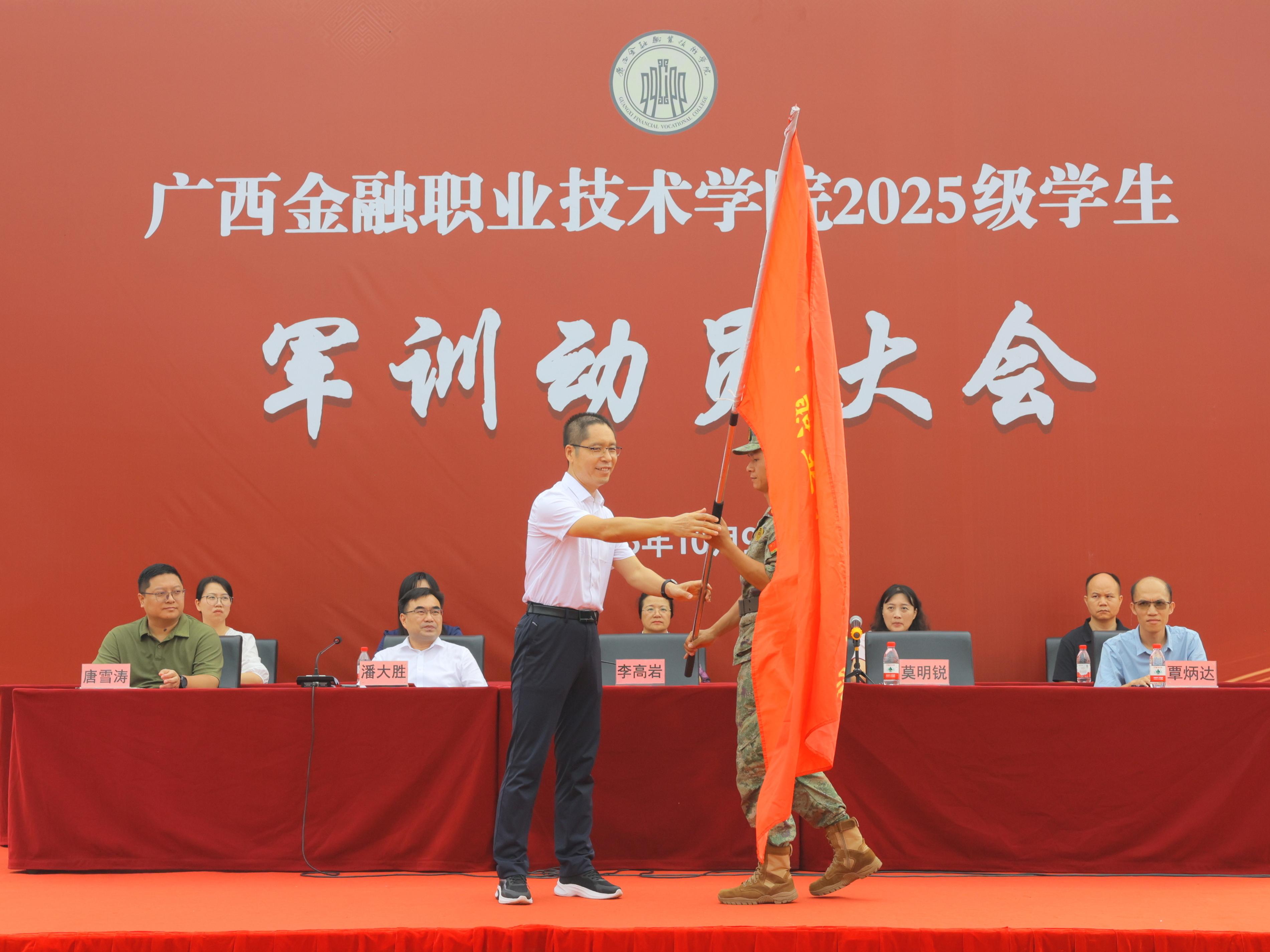 会上,李高岩书记和莫海燕校长向承训单位授军训团团旗,鲜红的旗帜高高飞扬,西汉姆联2025级学生军训正式拉开帷幕。