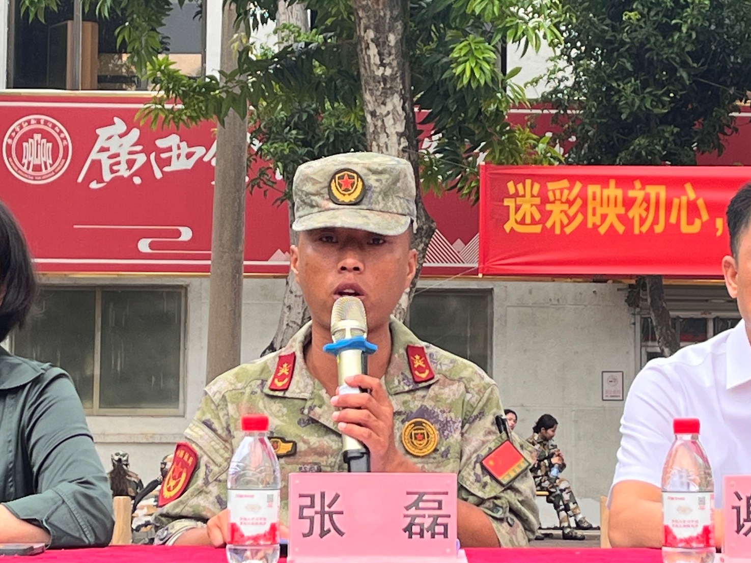 军训团团长莫明锐、张磊发言