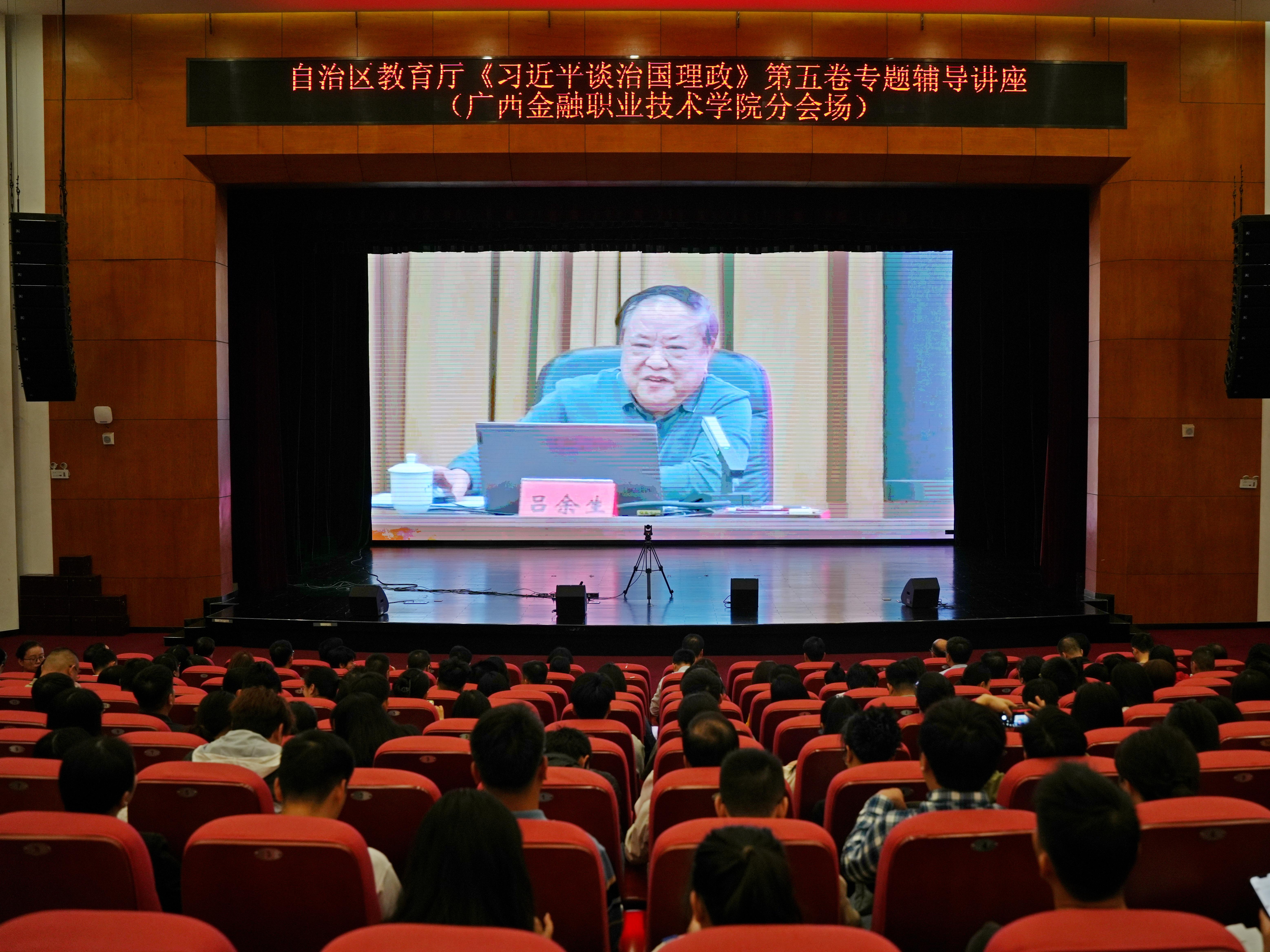 本次讲座的主讲人是广西壮族自治区决策咨询委员会专家、广西北部湾发展研究院院长吕余生教授。讲座中,吕余生教授紧扣国家战略和广西教育实际,从深入学习《习近平谈治国理政》第五卷的重要意义,《习近平谈治国理政》第五卷核心内容与理论创新,以党的创新理论为指导,奋力谱写中国式现代化广西篇章,深入学习贯彻习近平总书记关于教育的重要论述,扎实推进广西教育现代化建设四个方面进行授课,强调认真学习《习近平谈治国理政》第五卷是用习近平新时代中国特色社会主义思想武装全党、教育人民、指导实践的重要举措;这部著作全面系统反映习近平新时代中国特色社会主义思想最新成果,开辟了马克思主义中国化时代化新境界;是向世界讲好中国故事、分享中国智慧和方案的重要载体;抓好《习近平谈治国理政》第五卷学习贯彻,是教育部门的重大政治任务。
