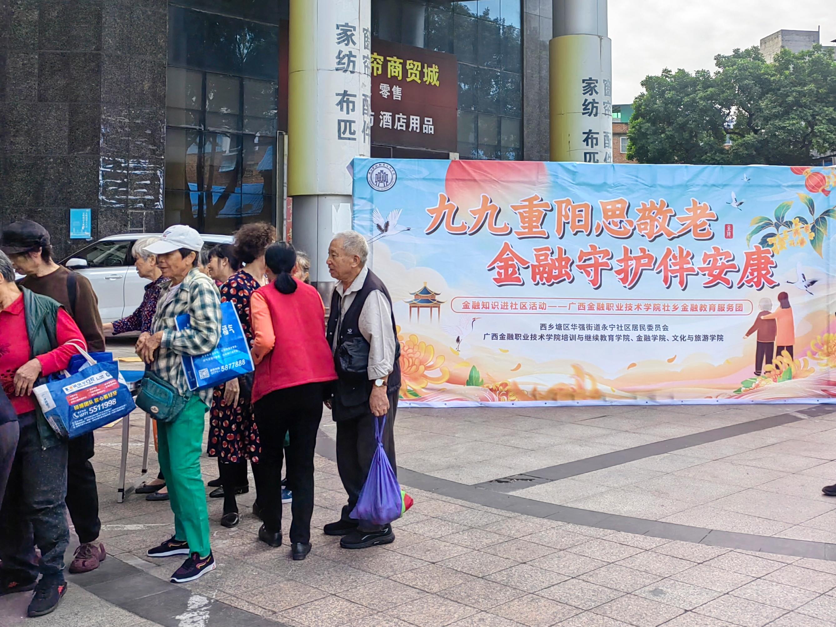 秋阳和煦,敬老情浓。在重阳佳节来临之际,为弘扬中华民族尊老敬老传统美德、深化校社共建社区学院成果,2025年10月28日,西汉姆联携手西乡塘永宁社区,成功举办“九九重阳思敬老 金融守护伴安康”主题活动,为社区长者送去节日温暖与关怀。