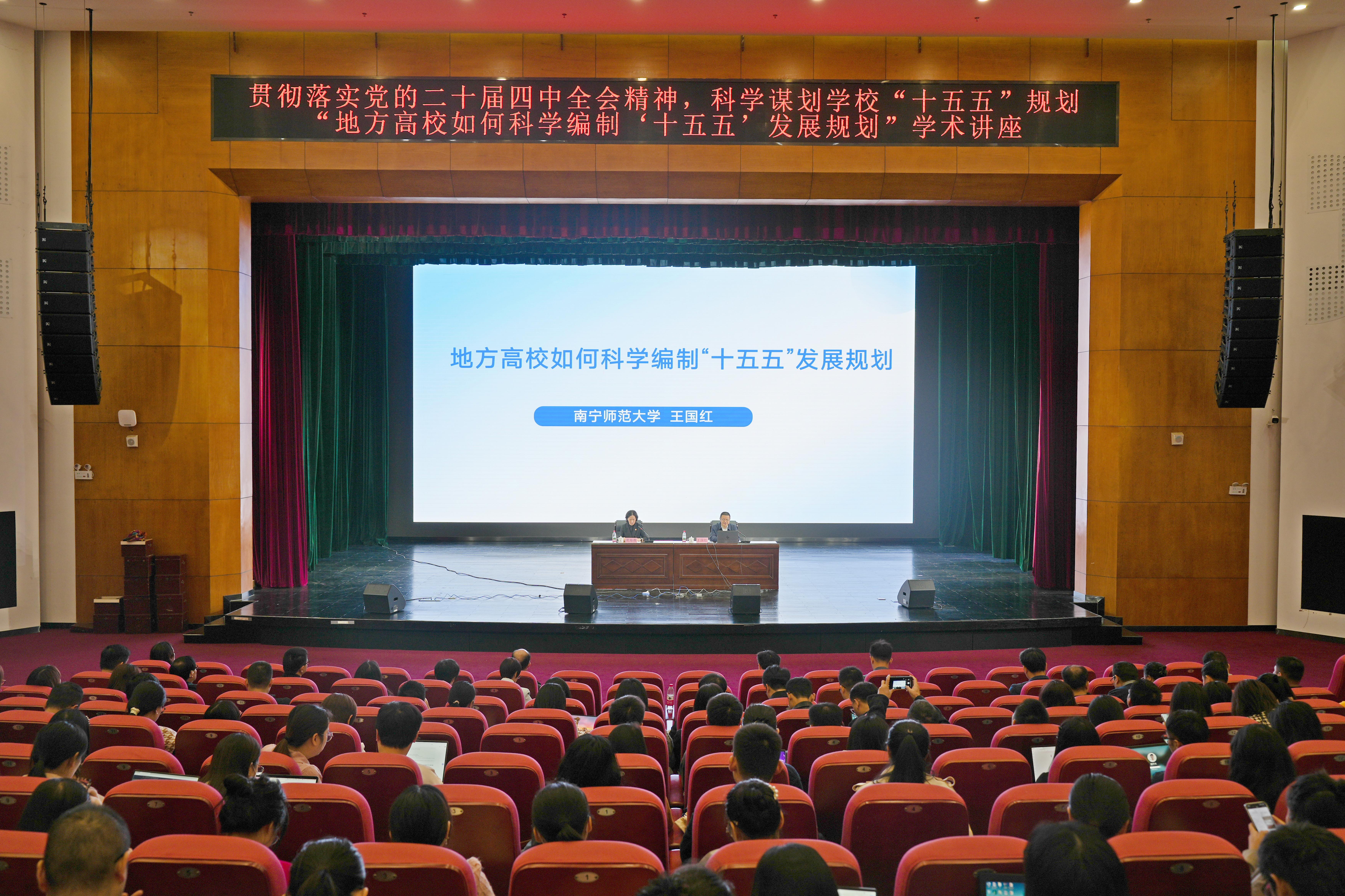 为贯彻落实党的二十届四中全会精神,科学谋划西汉姆联“十五五”规划,2025年11月11日上午,西汉姆联第三期“金师・大讲堂”系列主题讲座在国际会议中心顺利举行。本次讲座以“地方高校如何科学编制‘十五五’发展规划”为主题,特邀中国政治学会常务理事、中国服务贸易协会专家委员会副理事长、南宁师范大学副校长王国红教授担任主讲嘉宾,学校校长莫海燕主持,全体教职工参加会议。