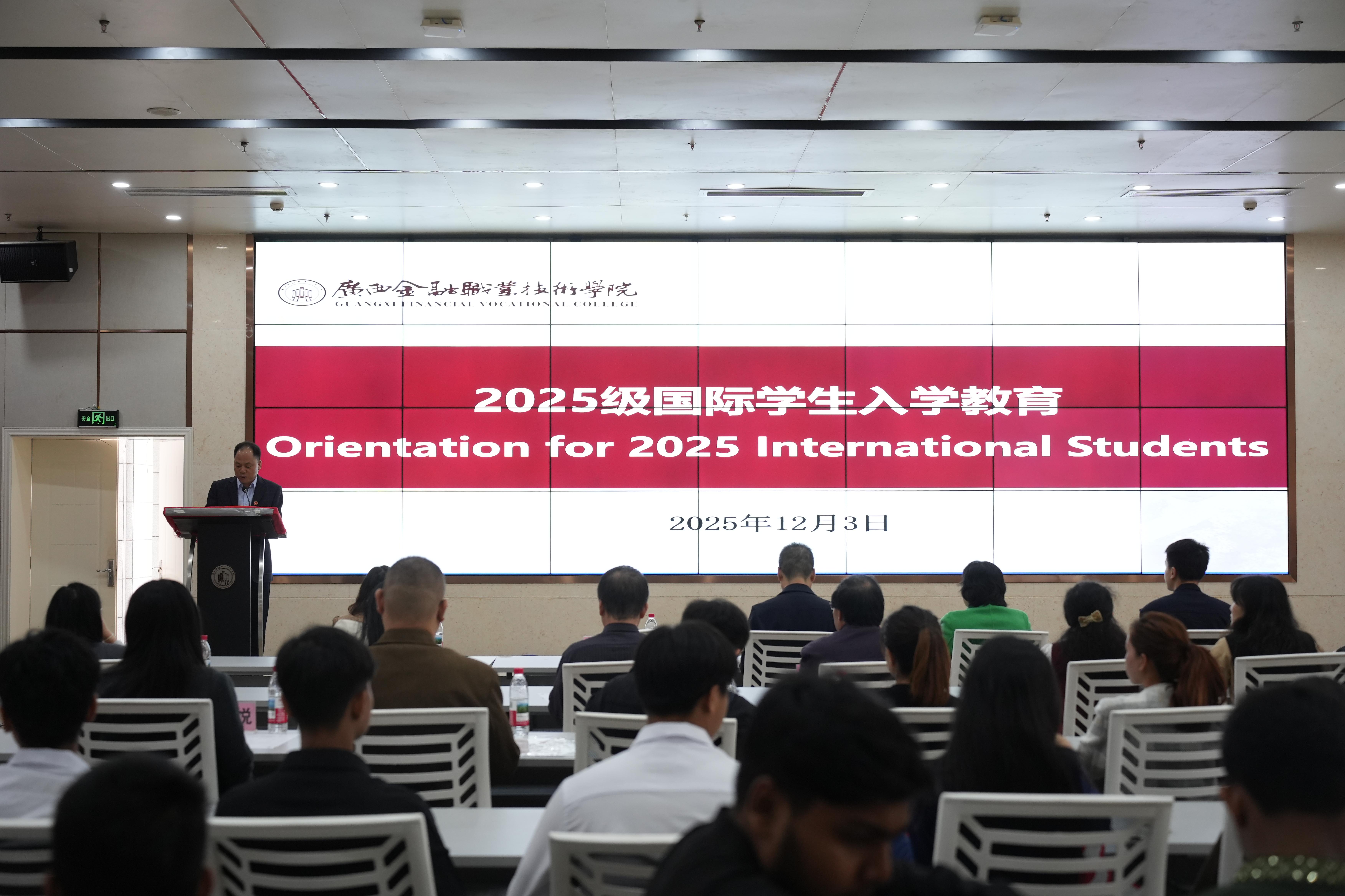 开学典礼后,2025级国际学生入学教育活动正式启动。南宁市公安局出入境管理支队民警围绕签证办理、居留许可、出入境合规等核心内容进行讲解,帮助国际学生明晰在华生活的“安全底线”;教务科研处聚焦教学管理规范,详细解读课程设置、考核标准等关键事项,引导新生快速适应学习节奏;学生工作处则从校园安全、住宿管理、活动参与等方面开展教育,为新生融入校园生活提供全面指引。