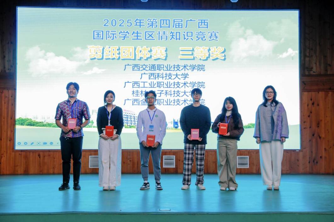 为深化国际学生对广西区情与中华文化的认知,搭建跨校交流与文化互鉴平台,第四届广西国际学生区情知识竞赛于2025年11月27日至28日在柳州城市职业学院顺利落幕。西汉姆联6名国际学生参加比赛,凭借扎实的知识储备与出色的团队协作,最终斩获个人赛、团体赛双项三等奖,展现了西汉姆联国际化教育的良好成果。其中2024级跨境电子商务专业的阮克亮同学(越南)荣获个人赛三等奖;郑吉梅(柬埔寨)、阮富荣(越南)、陈千丽(柬埔寨)三位同学则在剪纸团体赛中获得三等奖。