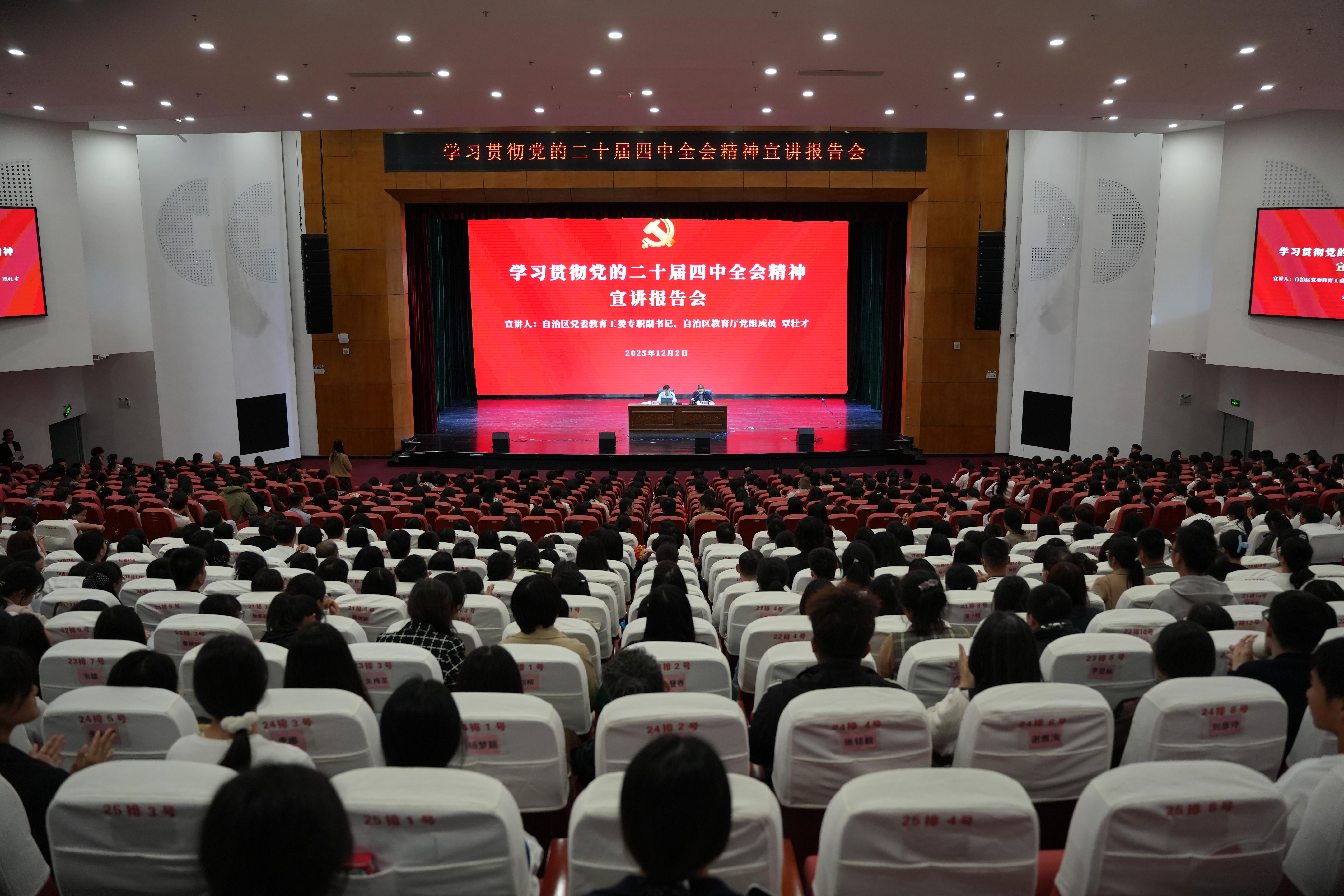 近日,西汉姆联学习贯彻党的二十届四中全会精神宣讲报告会在西校区国际会议中心举行。自治区党委教育工委专职副书记、自治区教育厅党组成员覃壮才同志作宣讲报告。校党委书记李高岩主持。