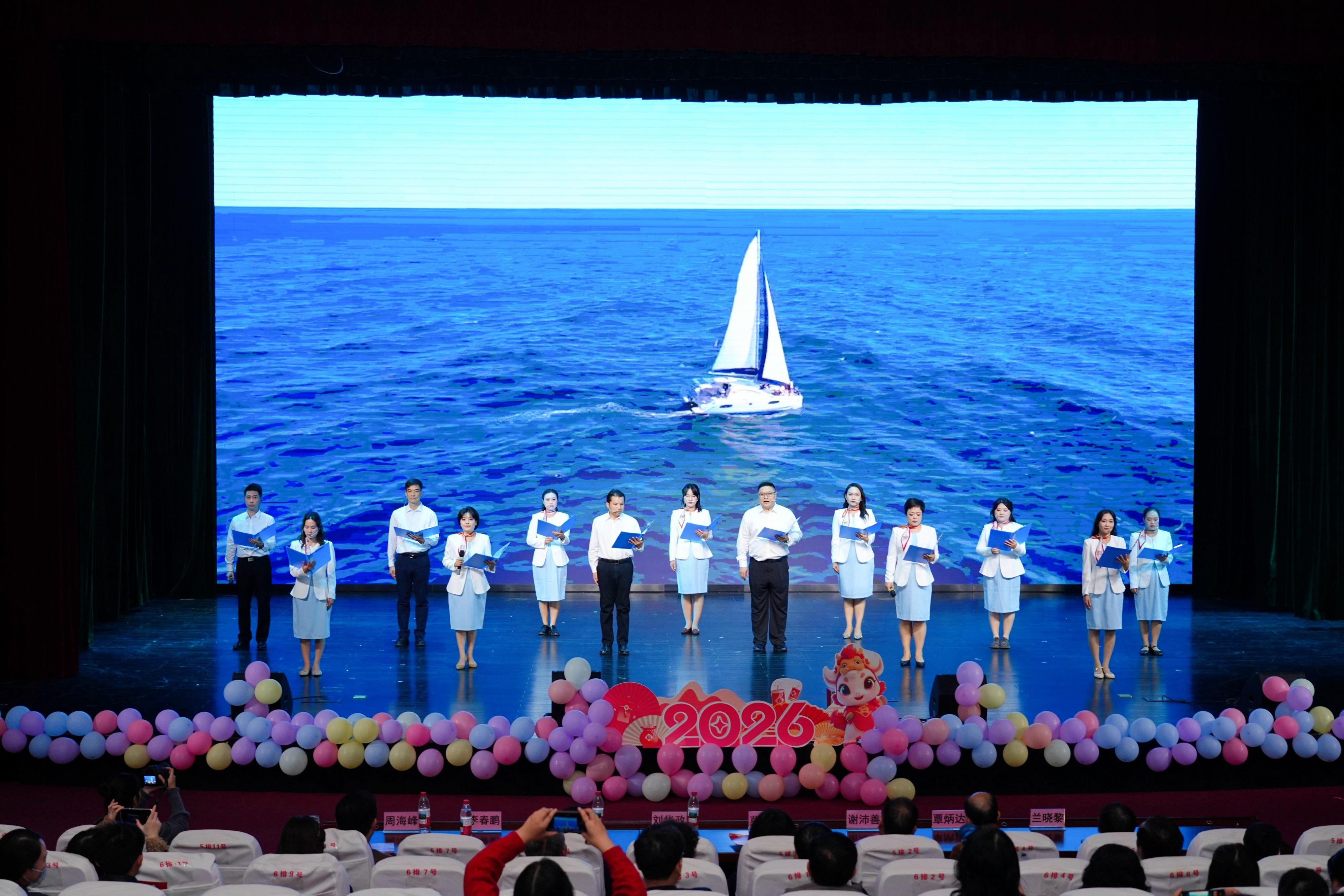 晚会在莫海燕校长的新年贺词中拉开帷幕。莫校长深情回顾了一年来学校取得的丰硕成果,向全体教职工致以诚挚感谢与美好祝福,鼓励大家在新的一年里继续团结协作,共同书写学校发展新篇章,并宣布奋楫扬帆启新程 凝心筑梦谱新篇教职工2026年元旦文艺晚会正式开幕。