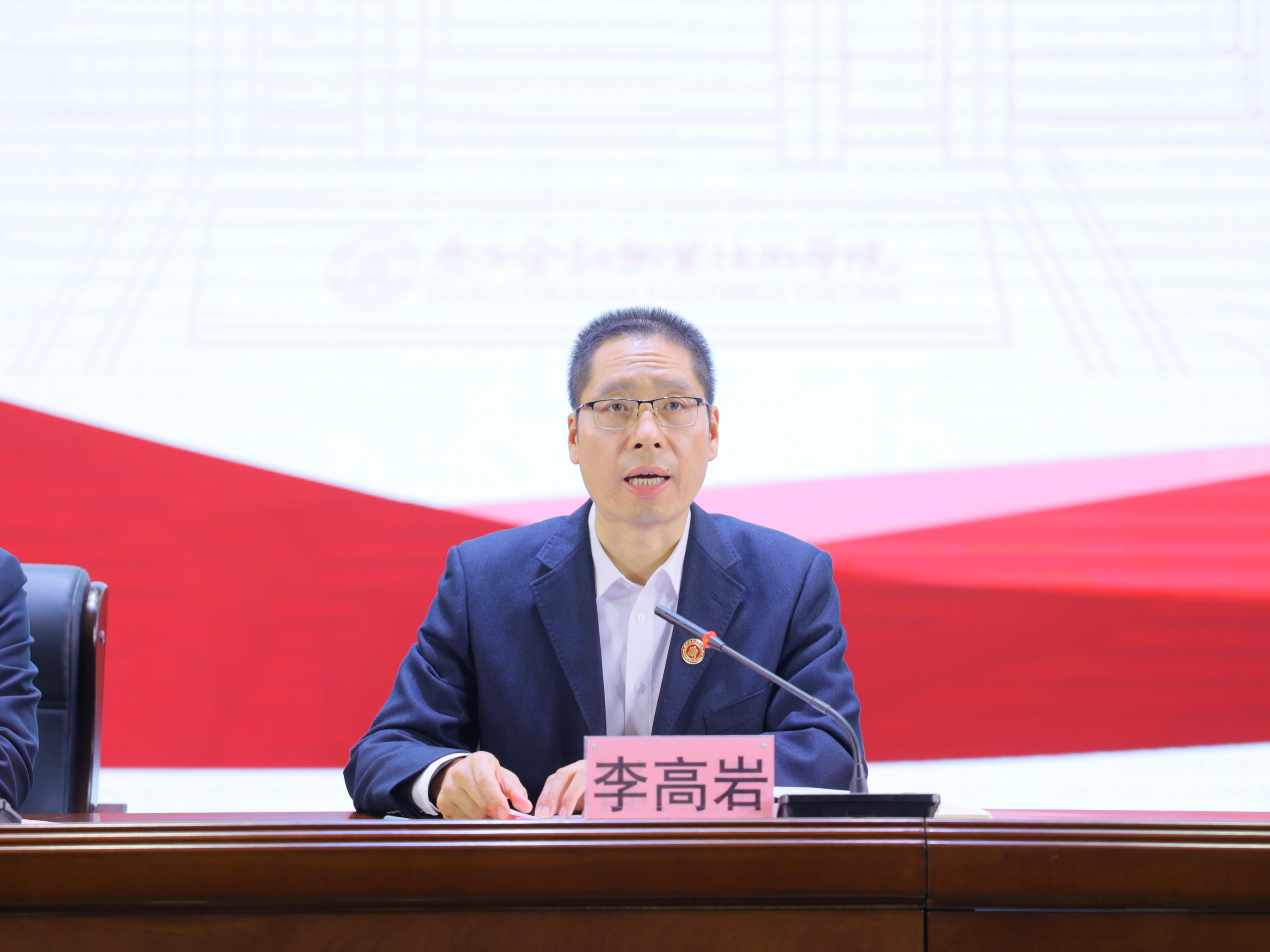 学校党委书记李高岩在讲话中以四个“心”为主题,与全体教职工进行工作交流。