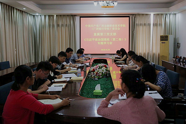 4月24日下午,我院直属第三党支部组织开展学习《习近平谈治国理政》第二卷活动。第三党支部全体党员、入党积极分子参加此次学习,并做学习交流分享。
