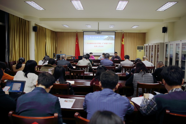 会议首先由各党支部书记汇报2017年党建工作。随后,刘华政副书记解读《关于印发广西高校党建工作考核指标体系(2017年)》桂党高工组〔2017〕55号文件精神,要求会后以支部为单位组织学习,细抓落实,查漏补缺,固化创新。他说,一、要将党务指标与业务工作考核挂钩。二、要梳理工作,查缺补漏。三、要将指标体系与十九大结合起来。四、要把党建工作与业务工作相结合。五、要开好年度民主生活会。六、党委要对各支部工作进行指导督查。七、要固化和推进党建工作。