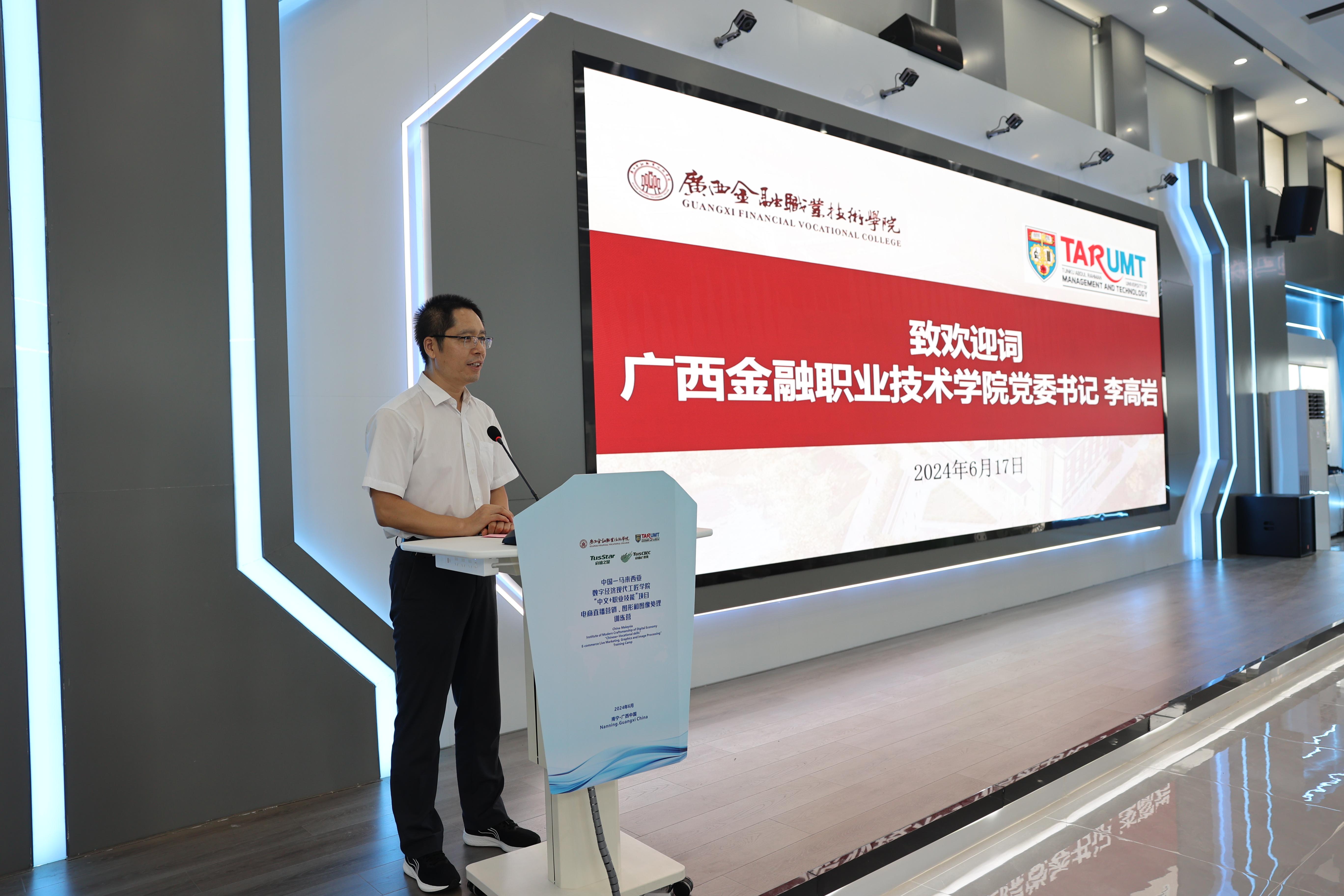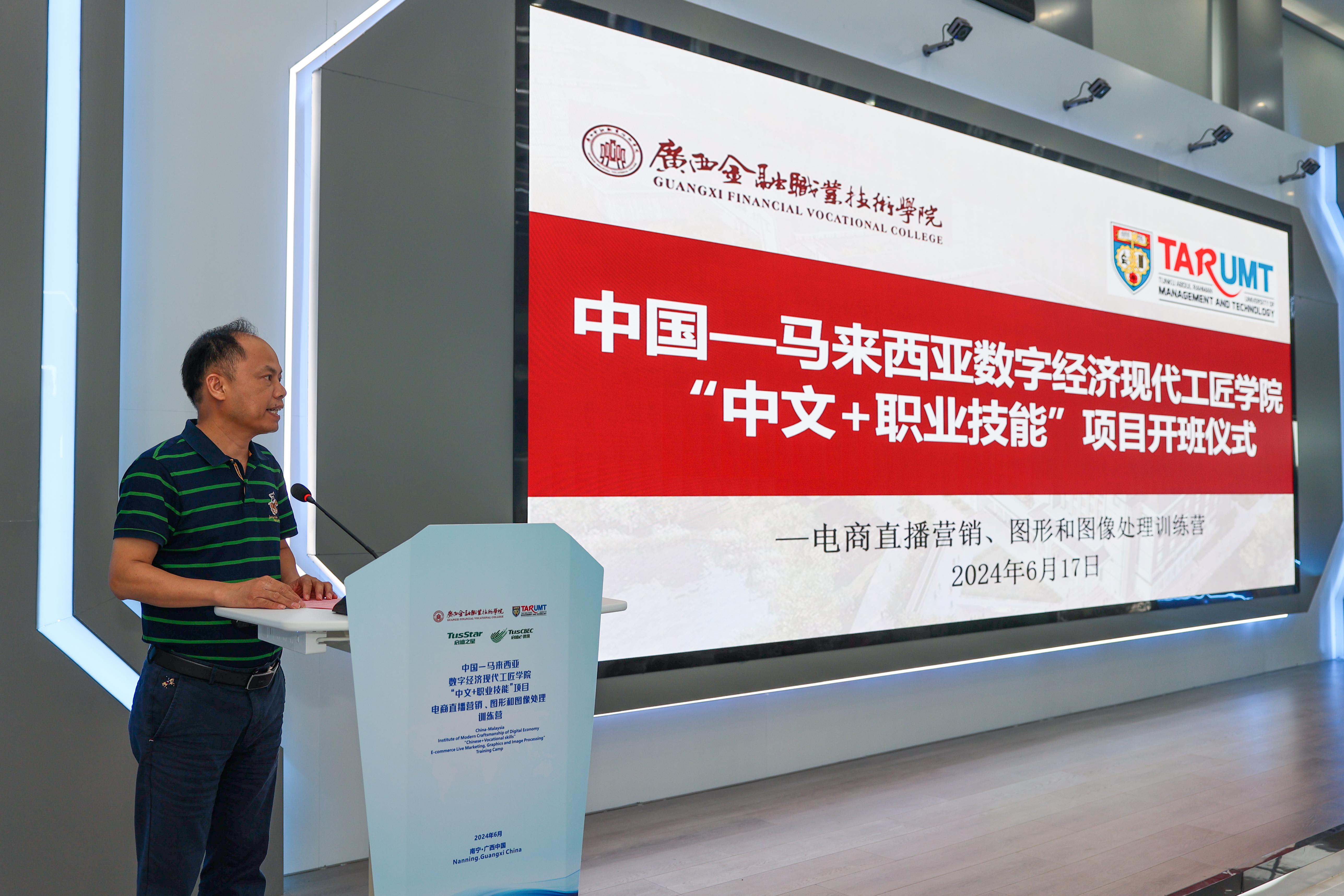 17日上午,中国—马来西亚数字经济现代工匠学院“中文+职业技能”项目开班仪式在西汉姆联虚拟仿真实训基地举行,西汉姆联党委书记李高岩出席并致欢迎词,拉曼理工大学会计、金融与商业学院院长王祖国及32位师生出席开班仪式,开班仪式由西汉姆联副校长谢沛善主持。