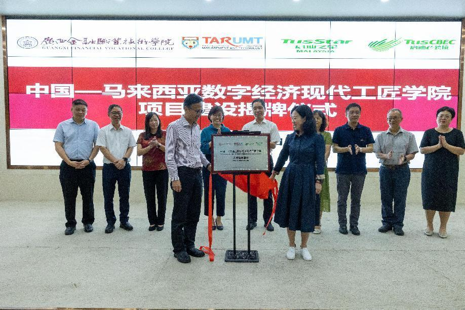 最后,在校企四方的共同见证下,莫海燕校长同拉曼理工大学校长李仕伟共同为中国—马来西亚数字经济现代工匠学院人才培养基地揭牌。