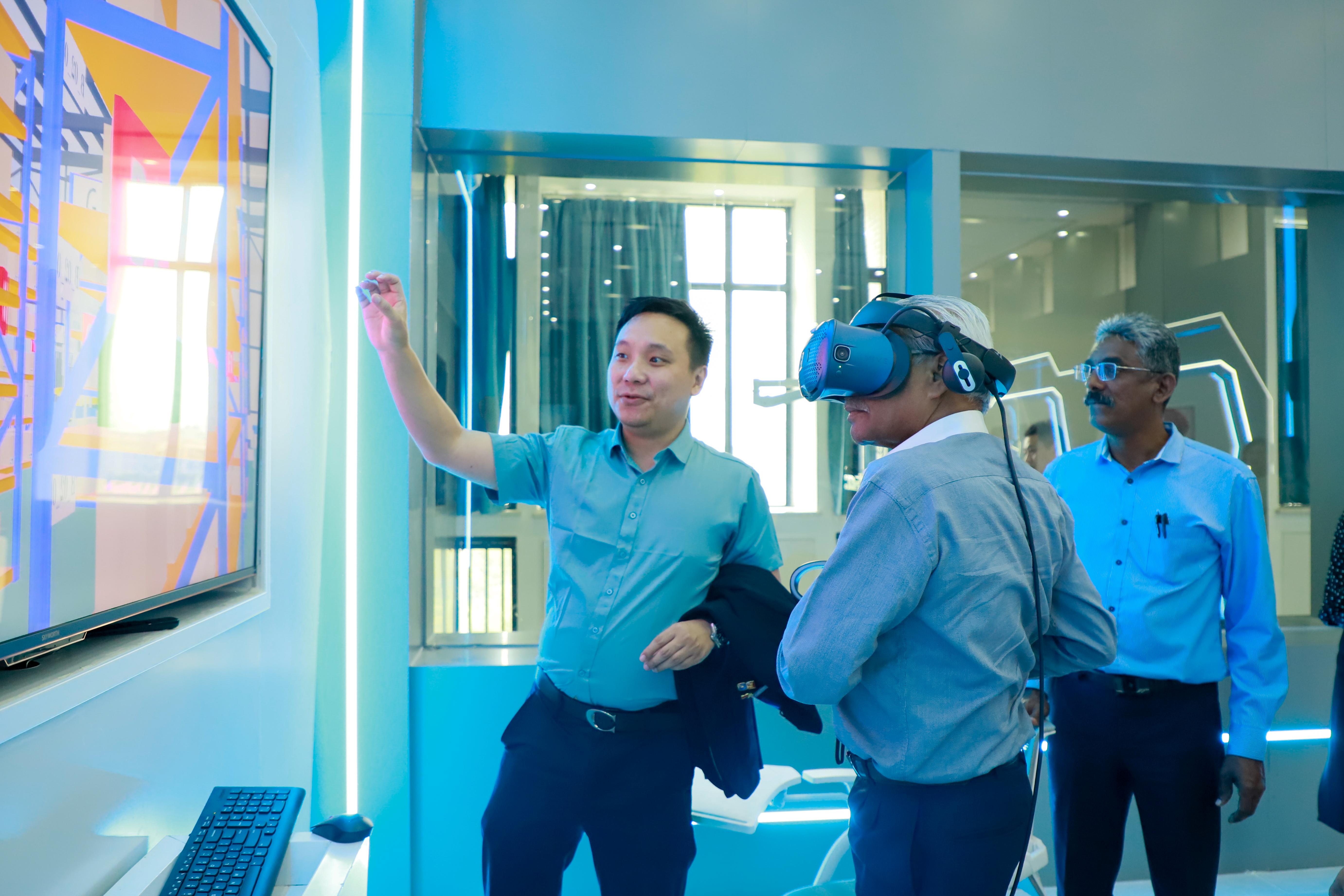 座谈会前,代表团还参观走访了西汉姆联文化与旅游学院、数字贸易学院(工商管理学院),体验了茶艺和非物质文化遗产扎染,体验了虚拟仿真实训基地的先进设施,感受了学院的教学环境和文化氛围,对西汉姆联在职业教育领域的成果给予了高度评价。在教学区域,代表团还被学生上课的情景所吸引,进入教室聆听了西汉姆联部分教师的授课。