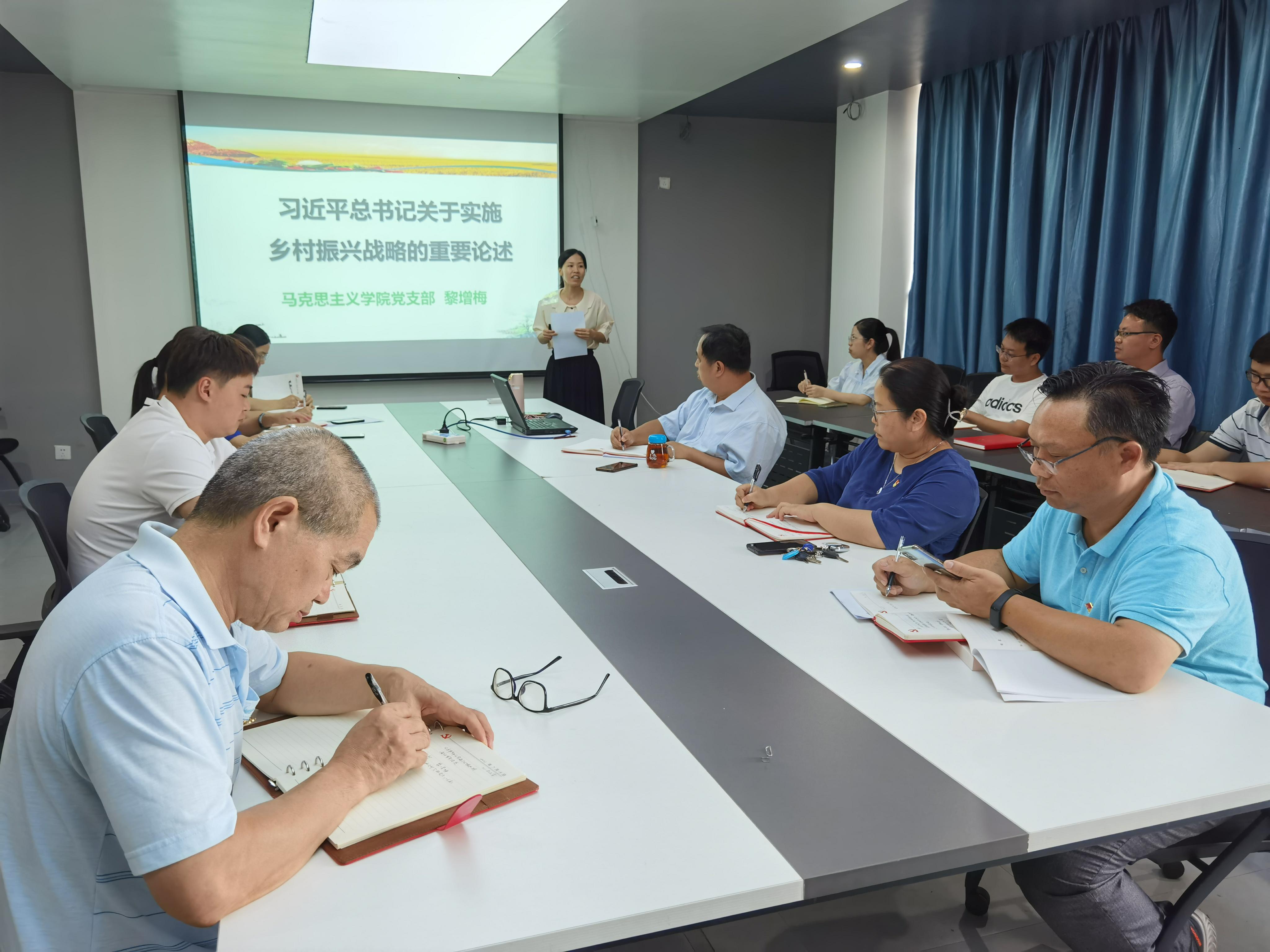 马克思主义学院党支部黎增梅以《习近平总书记关于实施乡村振兴战略的重要论述》为主题为直属第五党支部、直属第六党支部宣讲。